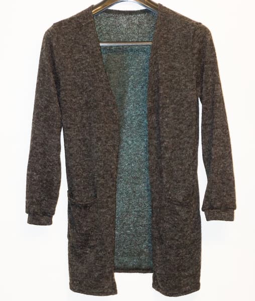 Чтобы проверить функцию вертикального отпаривания, была выбрана трикотажная кофта из смешанной ткани с добавлением шерсти. Ткань хорошая — вещь несильно мнется ни после стирки, ни в ходе хранения. Однако вещицу следовало освежить, чтобы волокна ткани расправились и «распушились», а также исчезли следы растянутой ткани от хранения на плечиках.