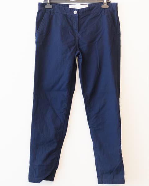 Брюки некоторое время хранились в шкафу в сложенном виде, поэтому ткань пересохшая, хотя глубоких грубых заломов на изделии нет.