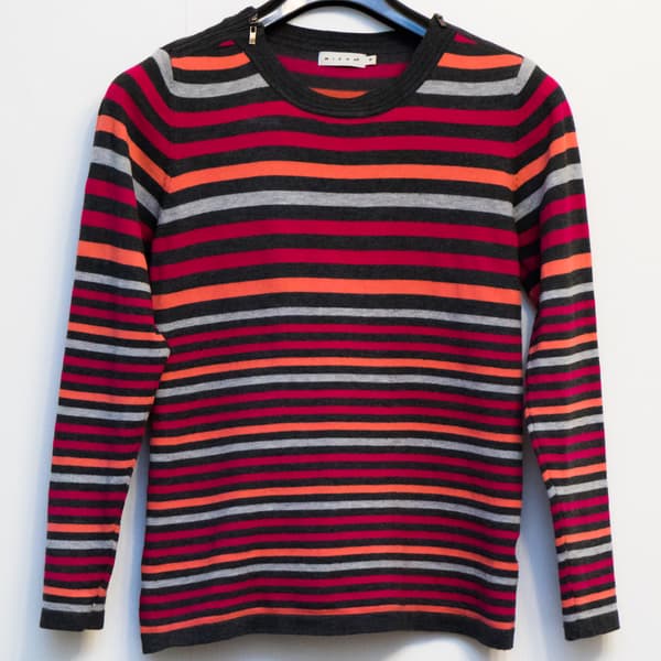Расправить сухую и с заломами хлопчатобумажную ткань платья нам не удалось. В принципе, мы и не ожидали блестящего результата, поскольку паровыми ударами лучше всего обрабатывать не мятые вещи, а одежду, долго провисевшую в шкафу и потерявшую свежий вид. Неплохо пропариваются с помощью утюга трикотажные вещи. Поэтому мы попробовали привести в приличный вид трикотажный пуловер. Ткань плотная, немного мятая.