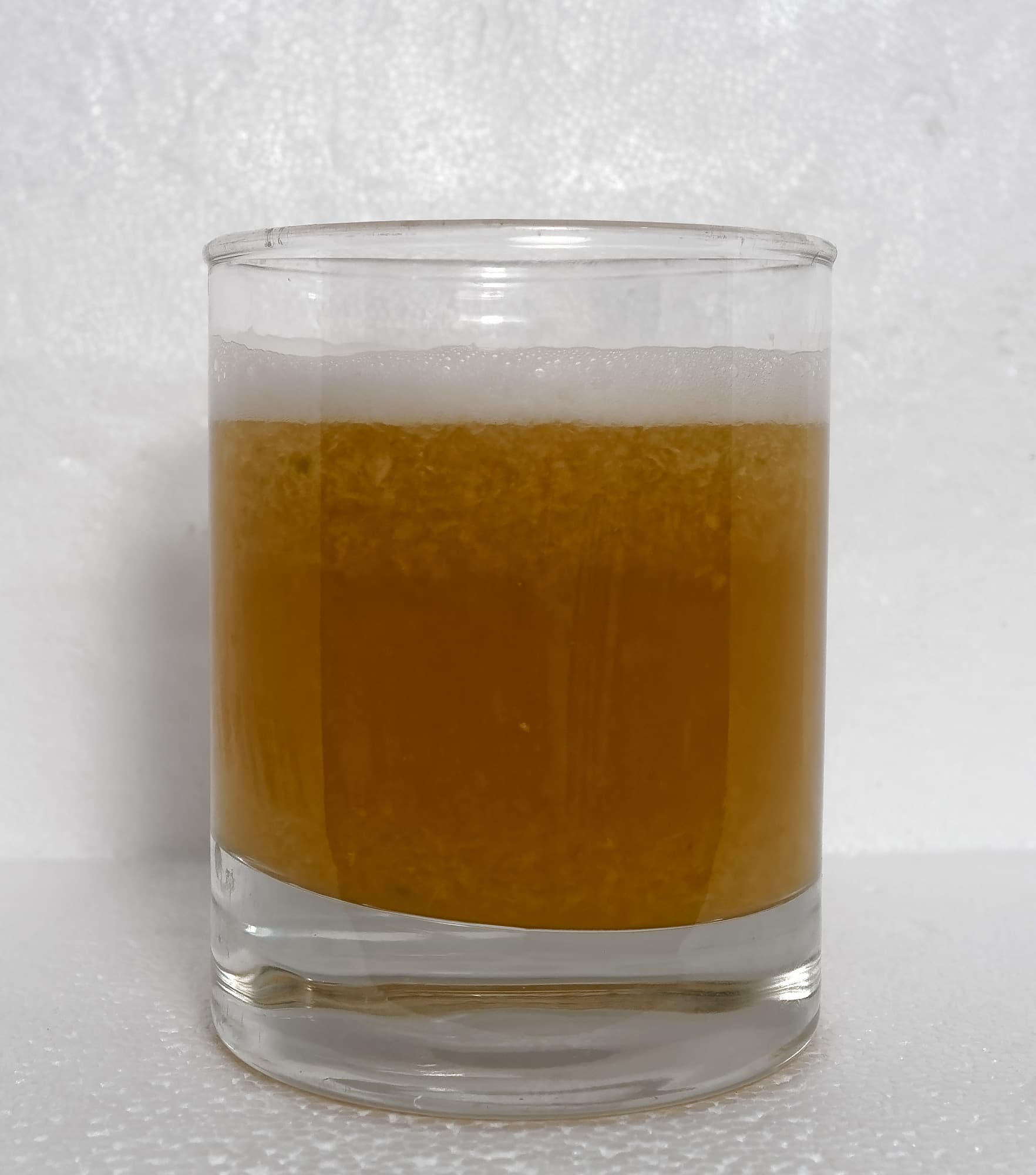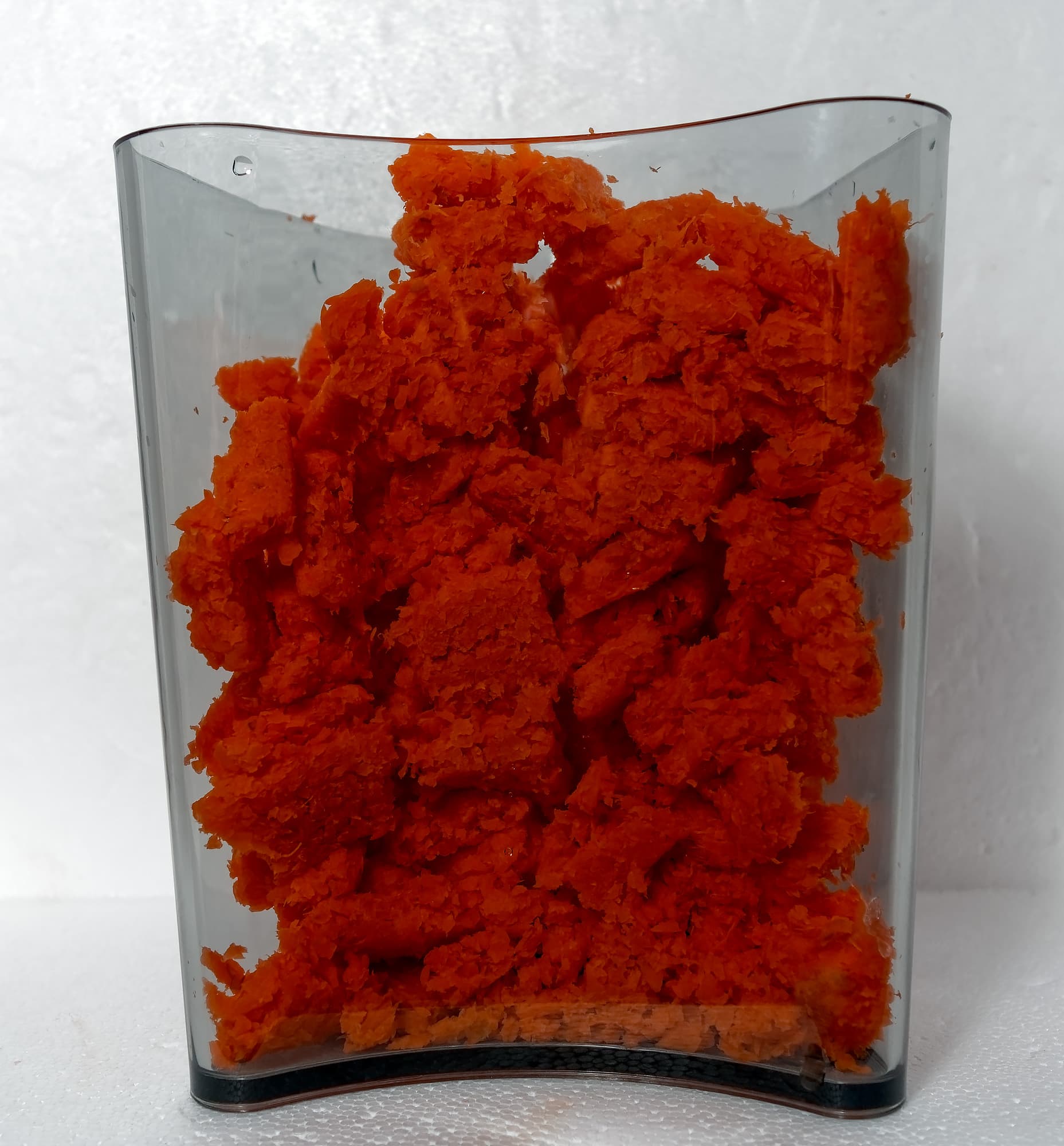 Жмыха очень много, он выглядит как мелкодисперсные кусочки одинакового размера. Ощущение, что морковь обрабатывали какие-то мелкие ученые грызуны. Сок равномерного цвета, почти без пены.