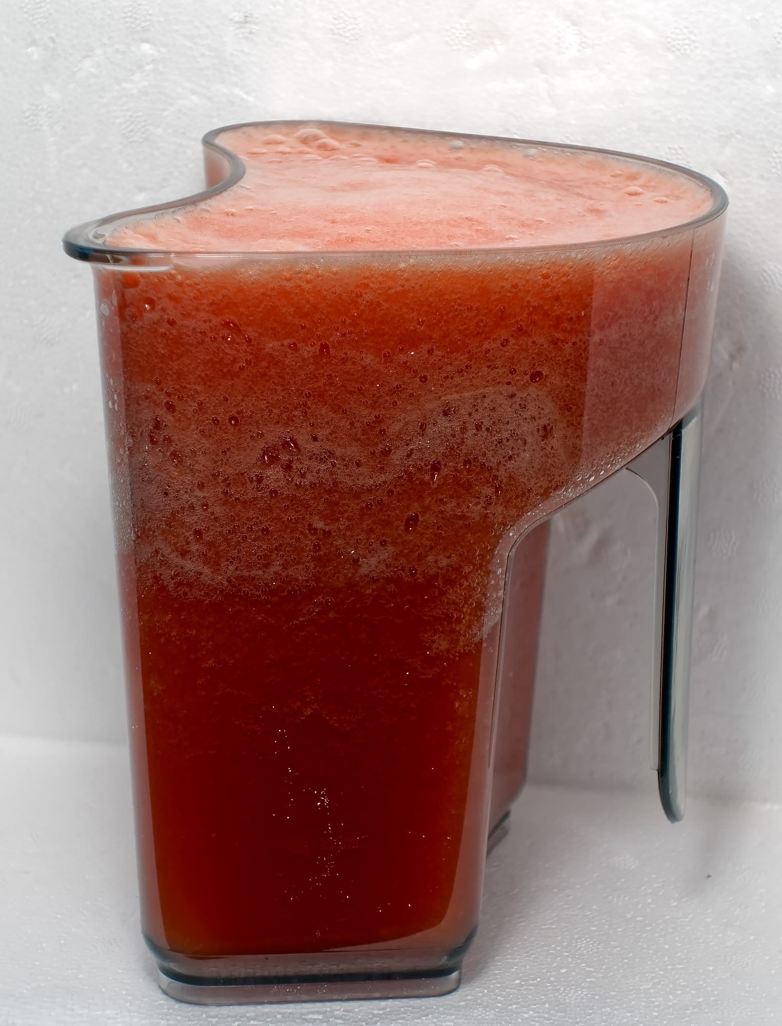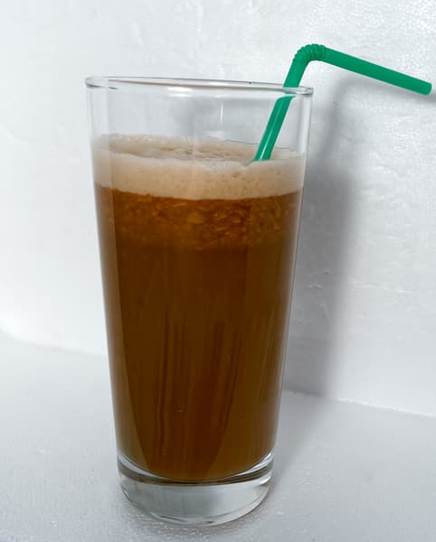 Сок равномерного цвета, без мякоти, без пены. Жмыха мало, он не слишком влажный.
