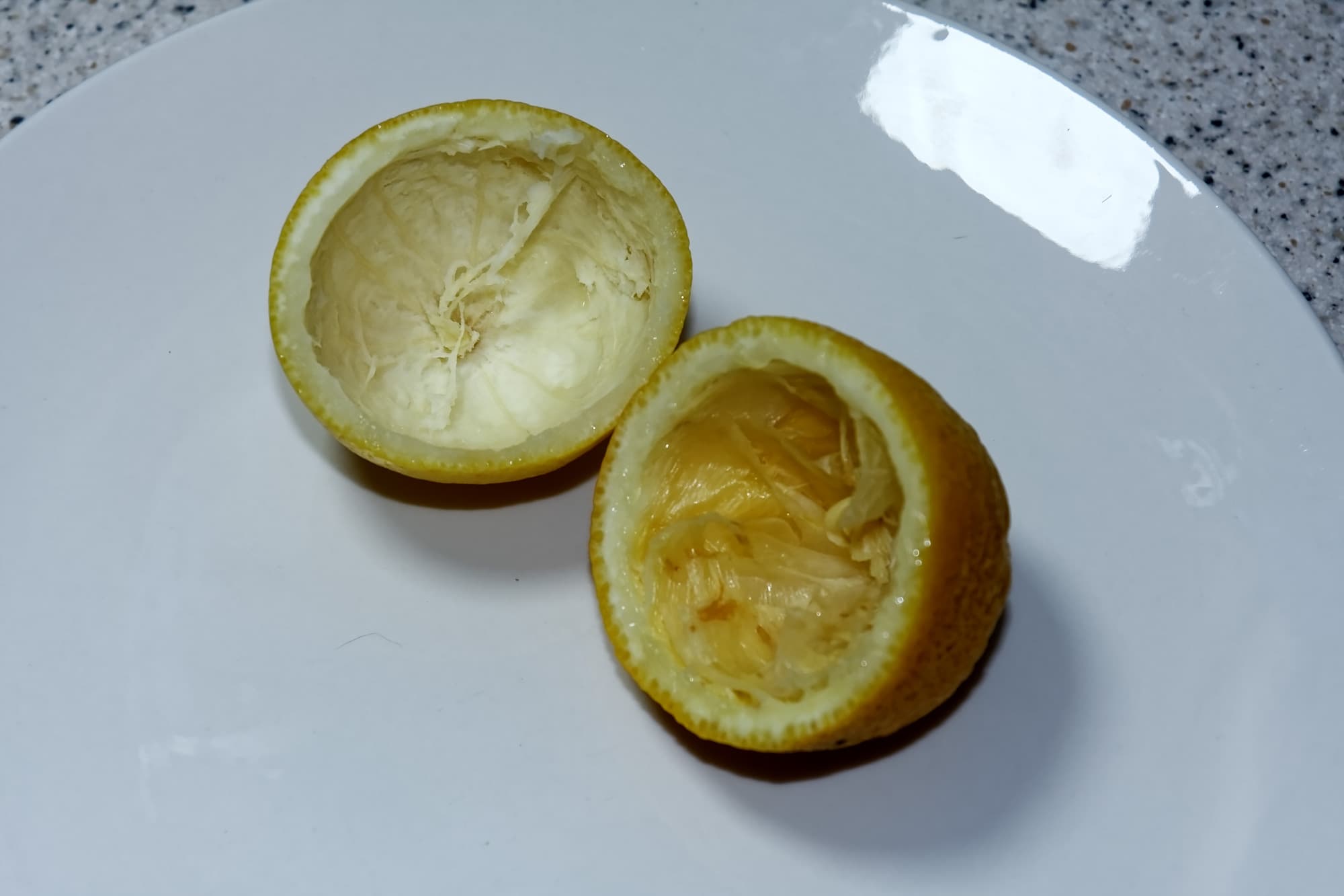 Отходы (грейпфрутовые шкурки), на наш взгляд, оказались отжаты хорошо. Явных участков неотжатой мякоти на них почти не наблюдалось.