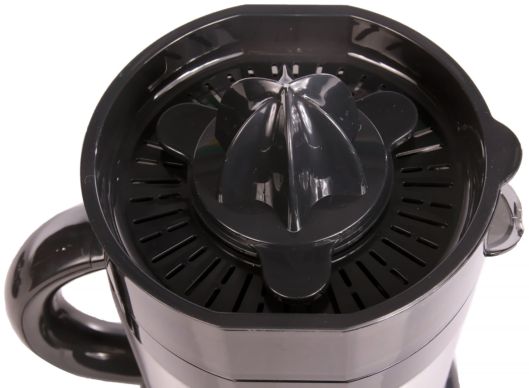 Каких-либо выделенных органов управления у соковыжималки не предусмотрено. Для начала работы (вращения насадки-конуса) достаточно надавить на нее половинкой цитрусового. Для прекращения вращения — перестать давить.