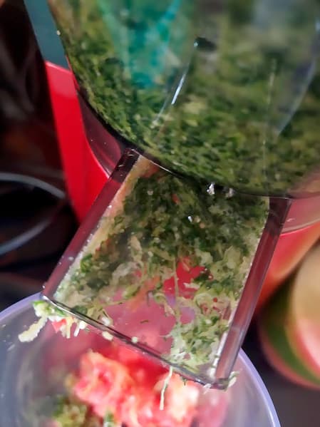 Капуста — не самый сочный овощ, и все же RJ-980S справлялась с ним играючи. Шнек мгновенно захватывал кусочки, утаскивал их вглубь прибора и быстро измельчал. Обычно тихая RJ-980S заметно при этом поскрипывала.