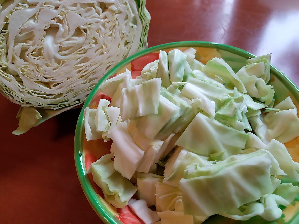 Килограмм капусты порезали на нечто, похожее на квадраты.