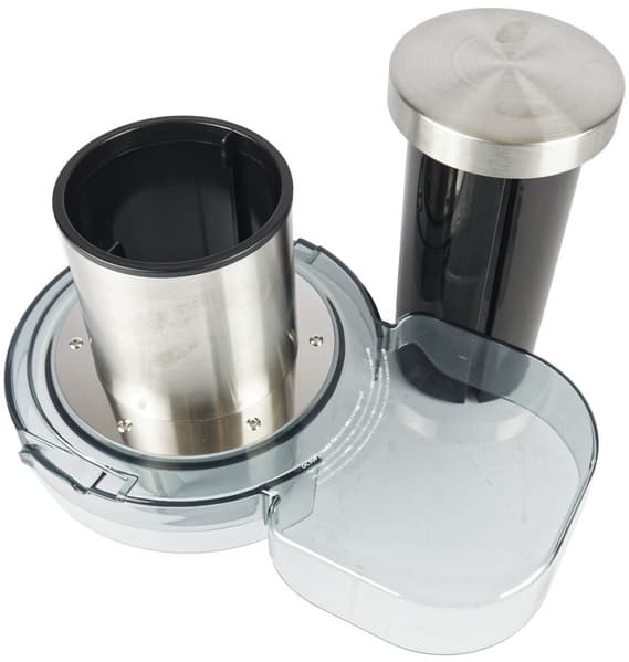 Сверху конструкция накрывается крышкой из прозрачного затемненного пластика с горловиной для подачи продуктов. Ширина отверстия — 86 мм. Крупных размеров пластиковый толкатель с прорезями-пазами устанавливается в крышку путем совмещения с направляющими в горловине.