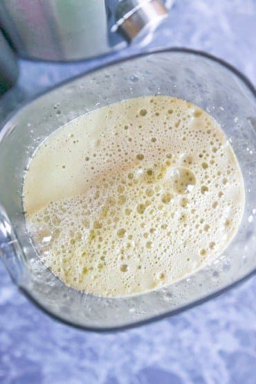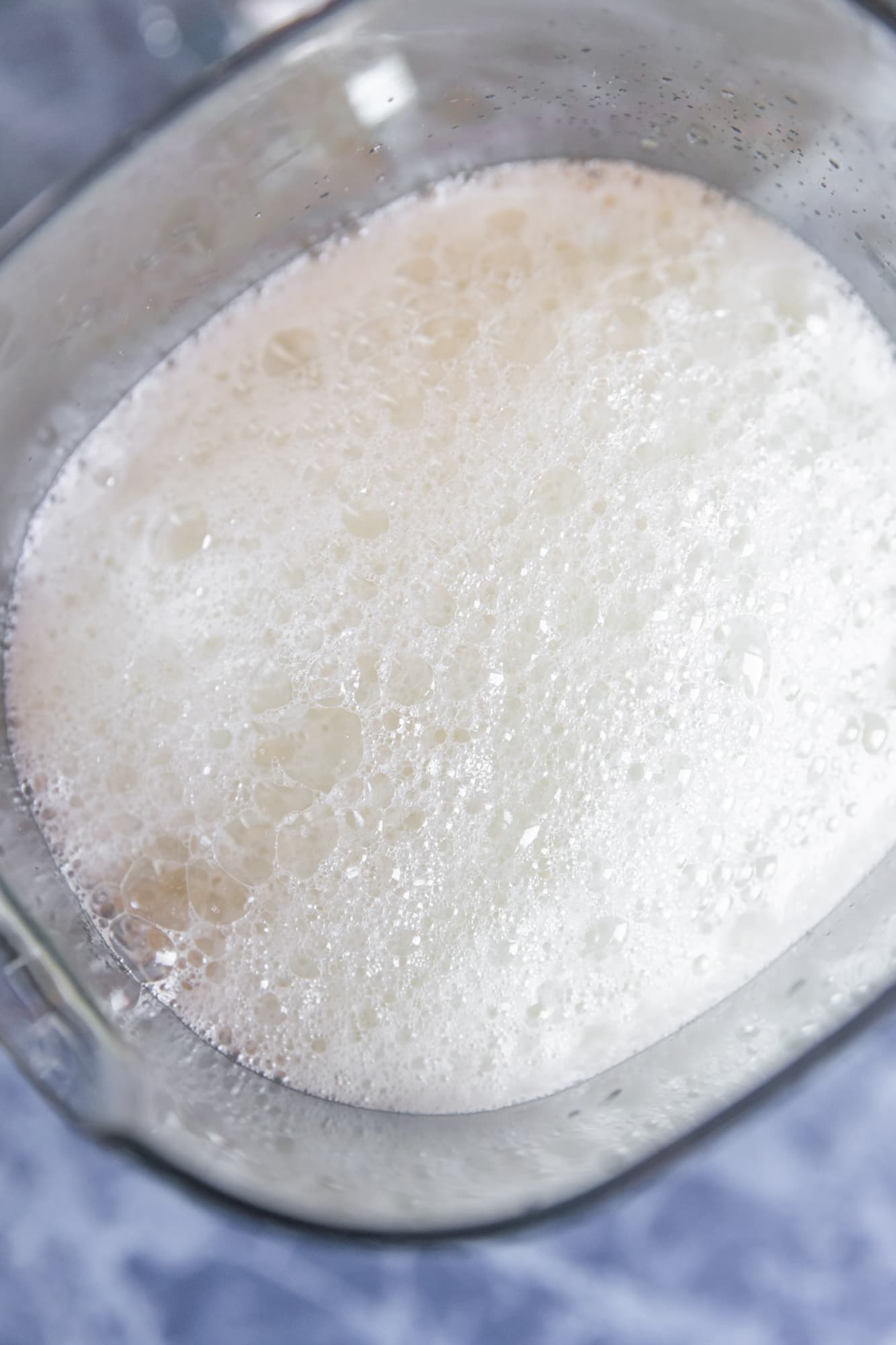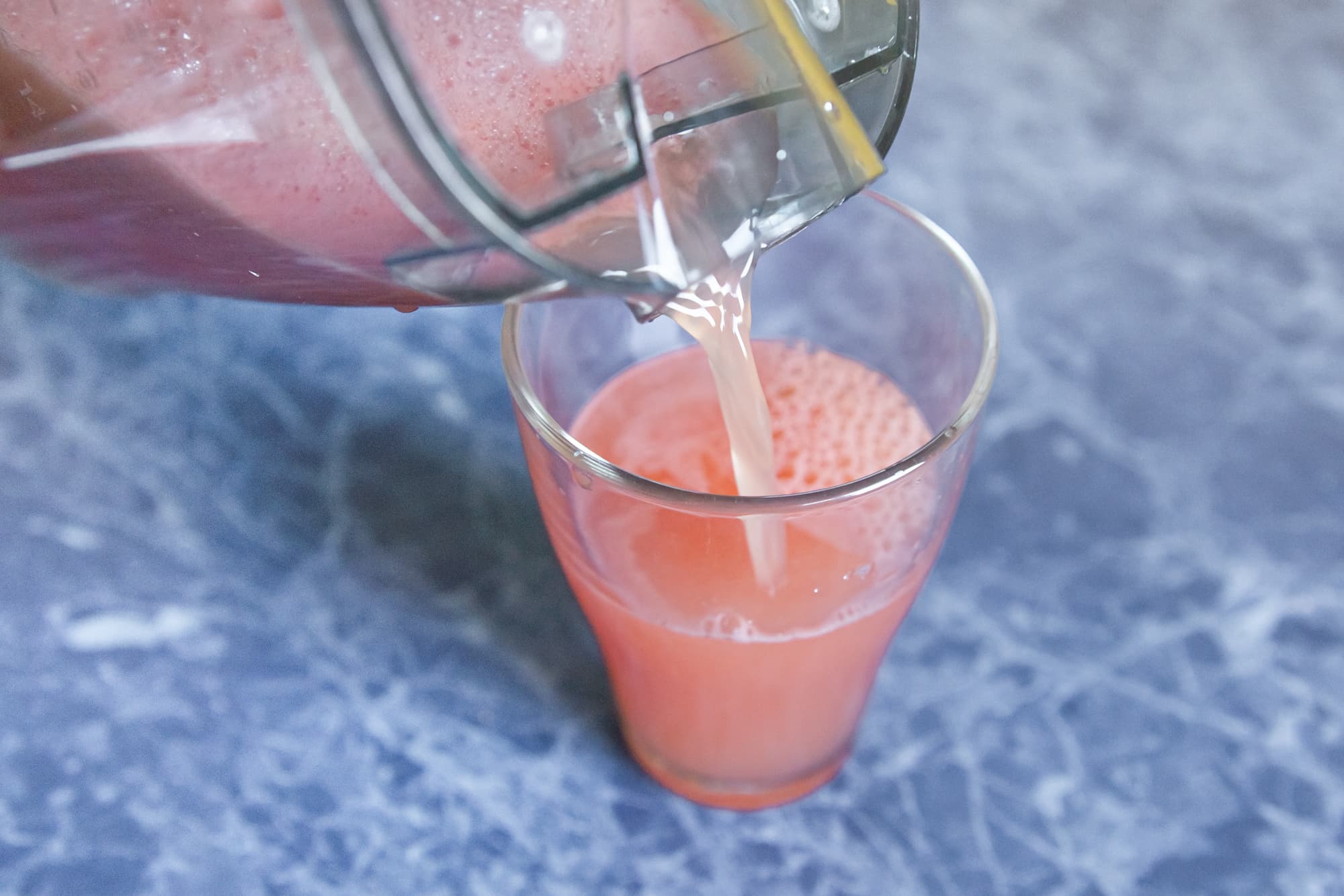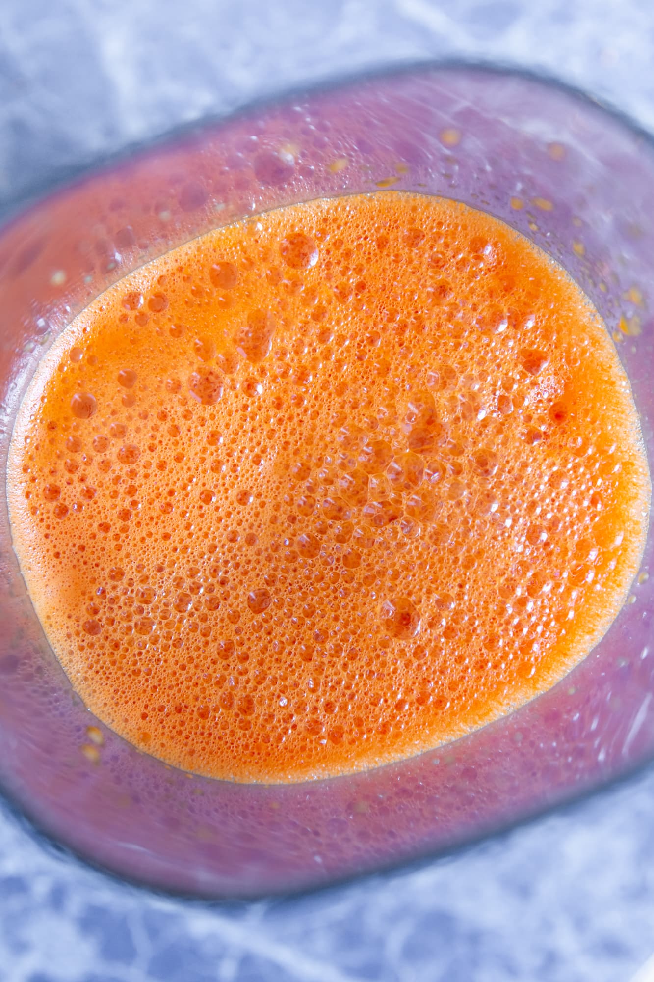 Мякоти в соке мы не увидели, прозрачную жидкость сверху накрывала густая шапка пены.