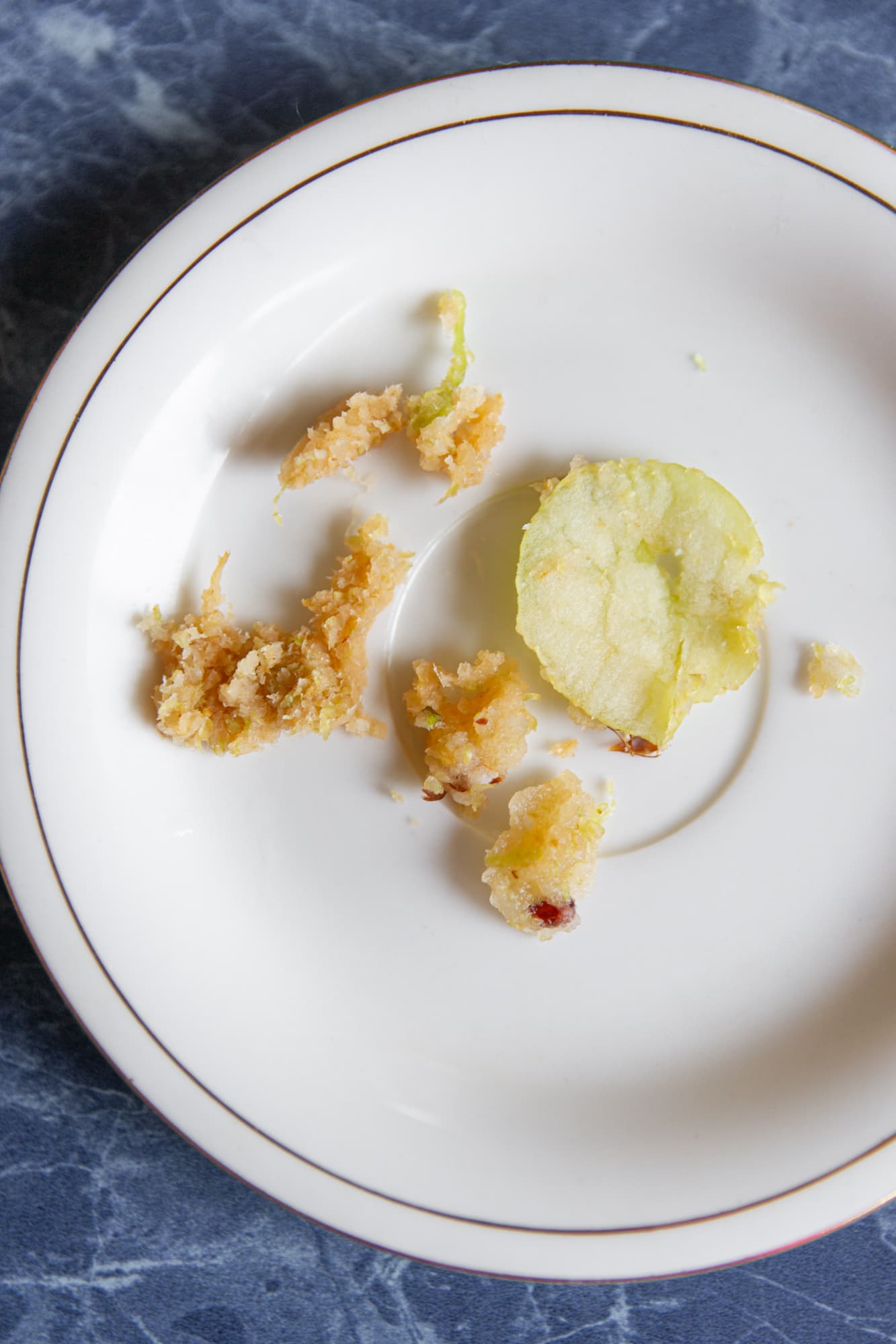 Твердое зеленое яблоко превратилось в 90 мл сока (без учета пены) за 12 секунд. Прибор работал на 4-й скорости. Никаких трудностей в процессе мы не заметили. Сигналов бедствия соковыжималка не подавала. Сок получился более мутный, чем в тесте с очищенными от семечек яблоками и приобрел легкий терпкий оттенок.