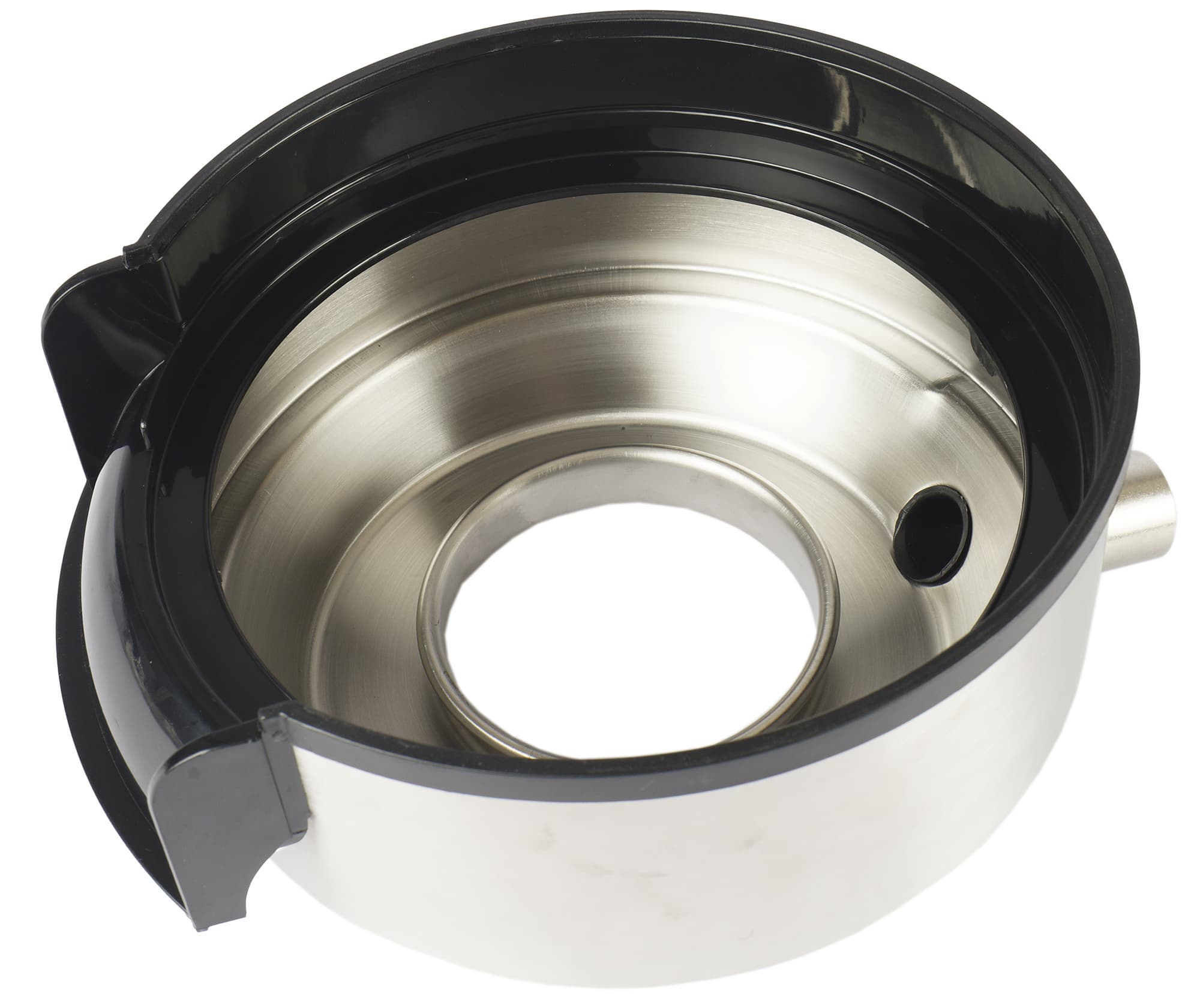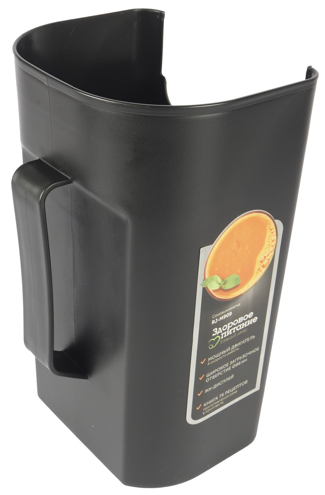 Контейнер для жмыха с удобной ручкой выполнен из черного пластика. Объем — 2,5 л.