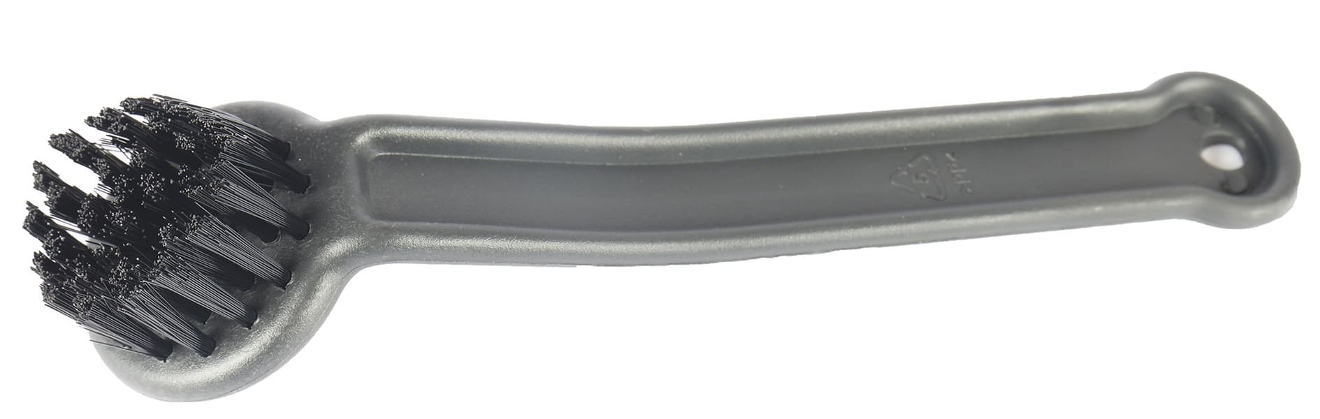 Соковыжималка комплектуется небольшой пластиковой щеточкой черного цвета, призванной облегчать очистку сепаратора от застрявших частиц фруктов и овощей.