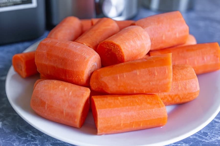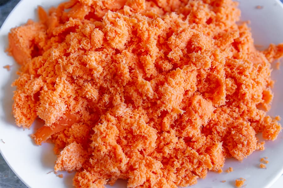 Морковь нарезали на части по 4-5 см и переработали килограмм, как и яблоки, на 4-й скорости.