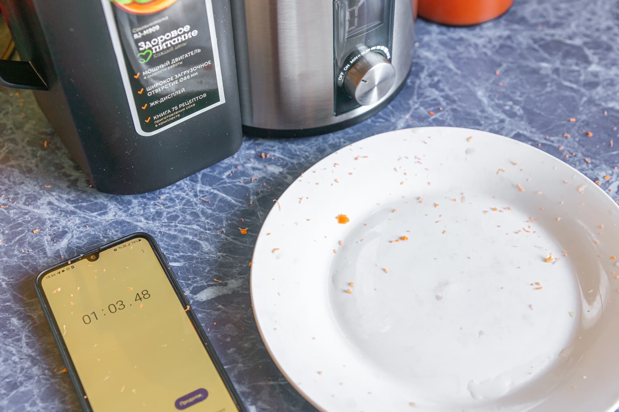 Все произошло молниеносно, поэтому время засечь мы не успели. Как и в случае с яблоками, прибор играючи выполнил свою работу на 5.