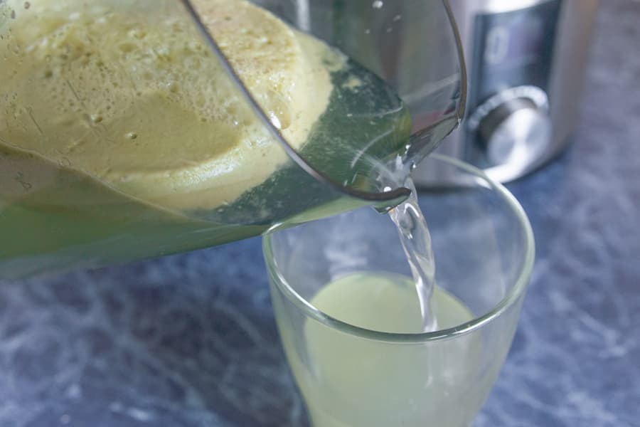 Сок выжимается довольно быстро. В отходах мы замечали минимальное количество неперемолотых частиц, сам жмых был лишь чуть влажным, без явного выделения сока. Отсекатель пены в кувшине работает отлично, в стакан мы выливали чистый прозрачный сок.