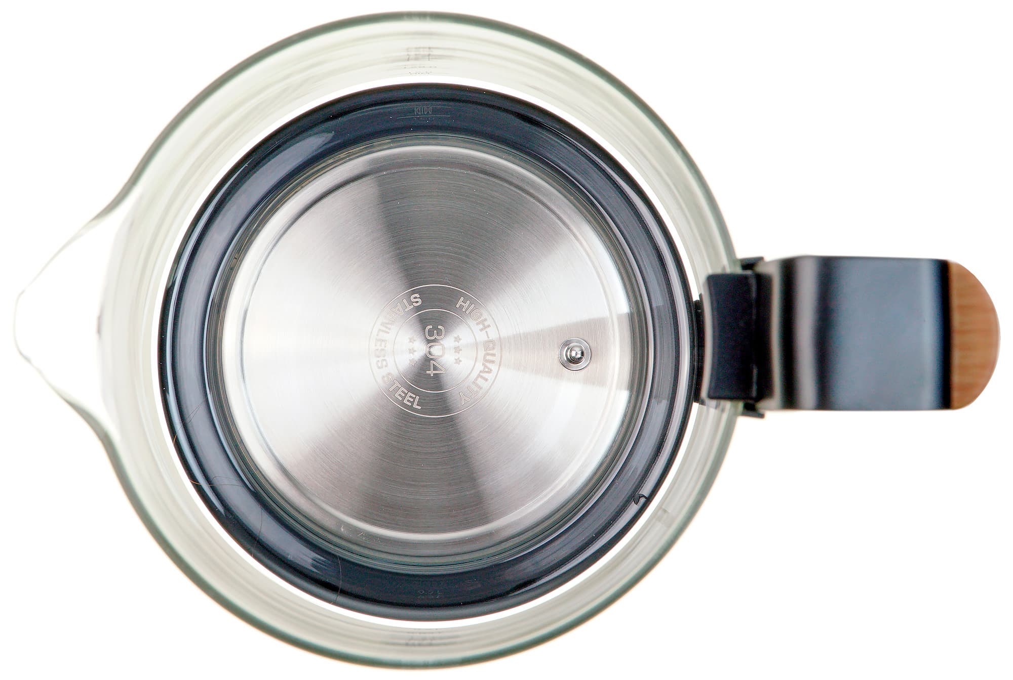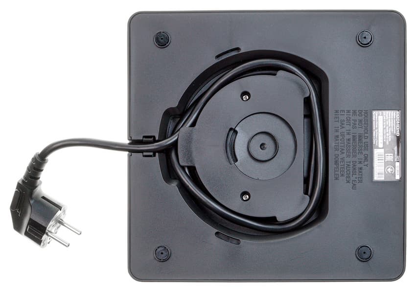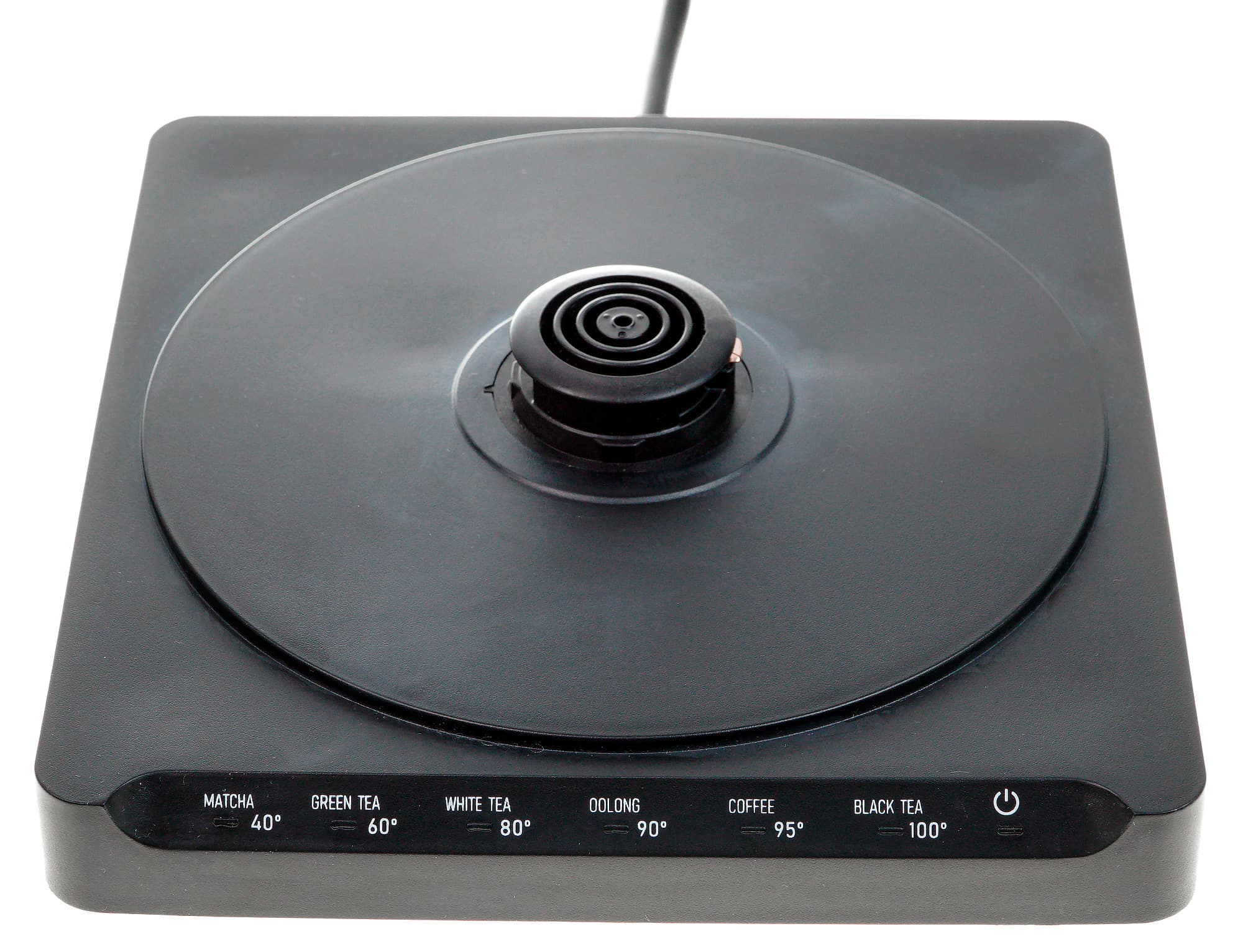 Мы сразу заметили несколько признаков, которые, на наш взгляд, являются признаками «правильного» прибора: полностью снимающуюся крышку самой простой конструкции, стеклянную колбу (идеальный индикатор уровня воды, не требующий никаких индикаторов вообще), множество аккуратных сенсорных кнопок на базе.