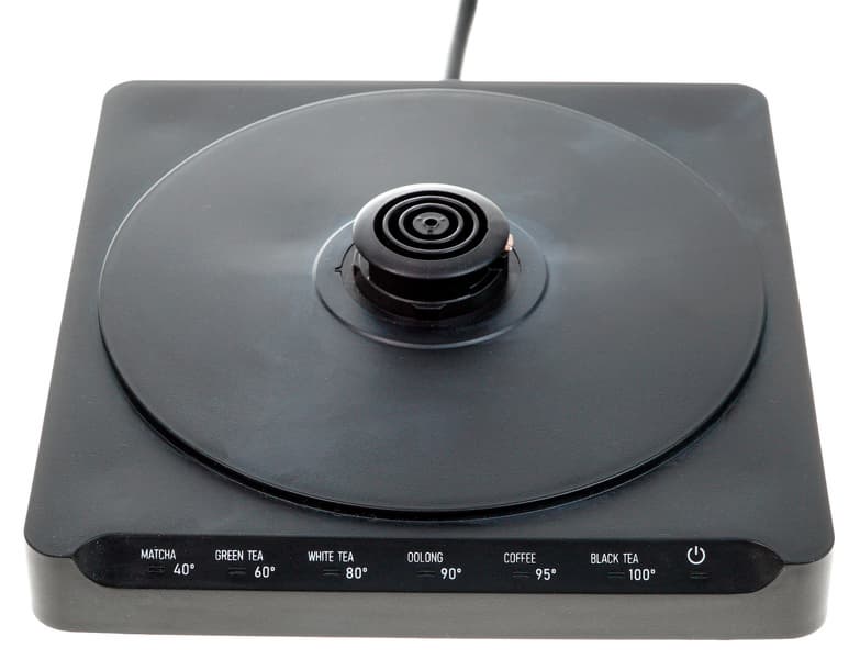 Панель управления расположена на базе и состоит из сенсорной кнопки включения и шести сенсорных кнопок с различными температурами.
