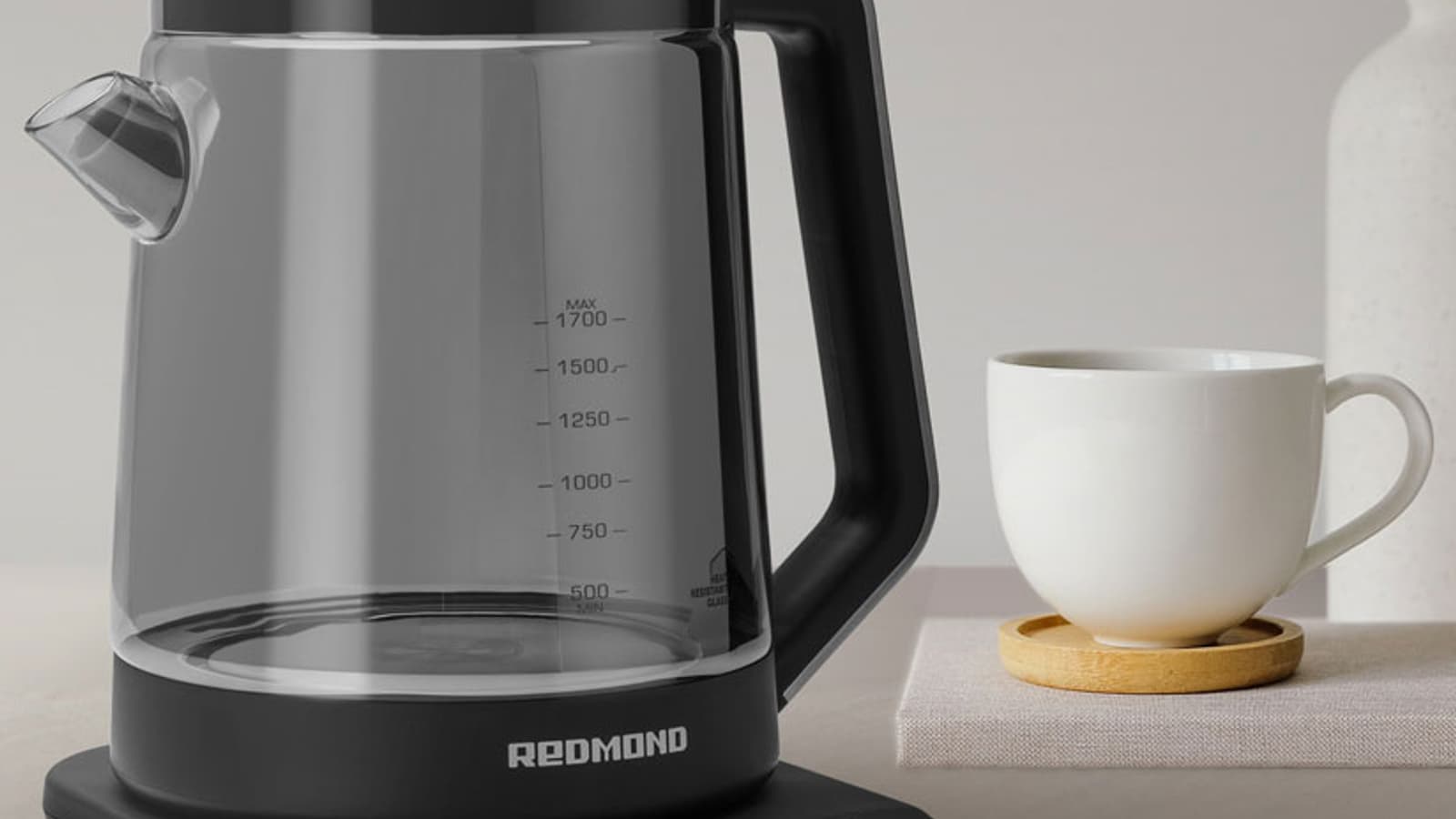 Корпус Redmond RK-G1310D — единая стеклянная колба с носиком, дизайном отдаленно напоминающая эмалированные кувшины и молочники прошлого века. Но благодаря лаконичности, сочетанию термостойкого затемненного стекла и хромированных деталей, прибор гармонично впишется в интерьер любой современной кухни. Затемнение стекла делает чайник блестящим непрозрачным или полупрозрачным в зависимости от угла зрения.