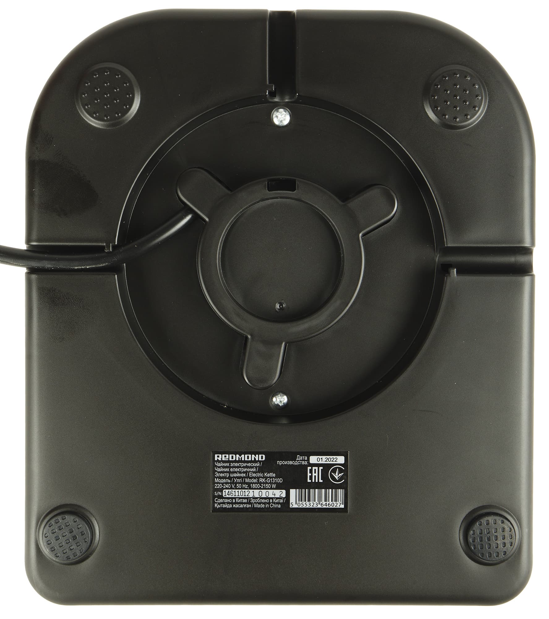 Подставка Redmond RK-G1310D небольшая, аккуратная, пластиковая. Контактная группа позволяет чайнику вращаться на ней на 360° беспрепятственно, что очень удобно.
