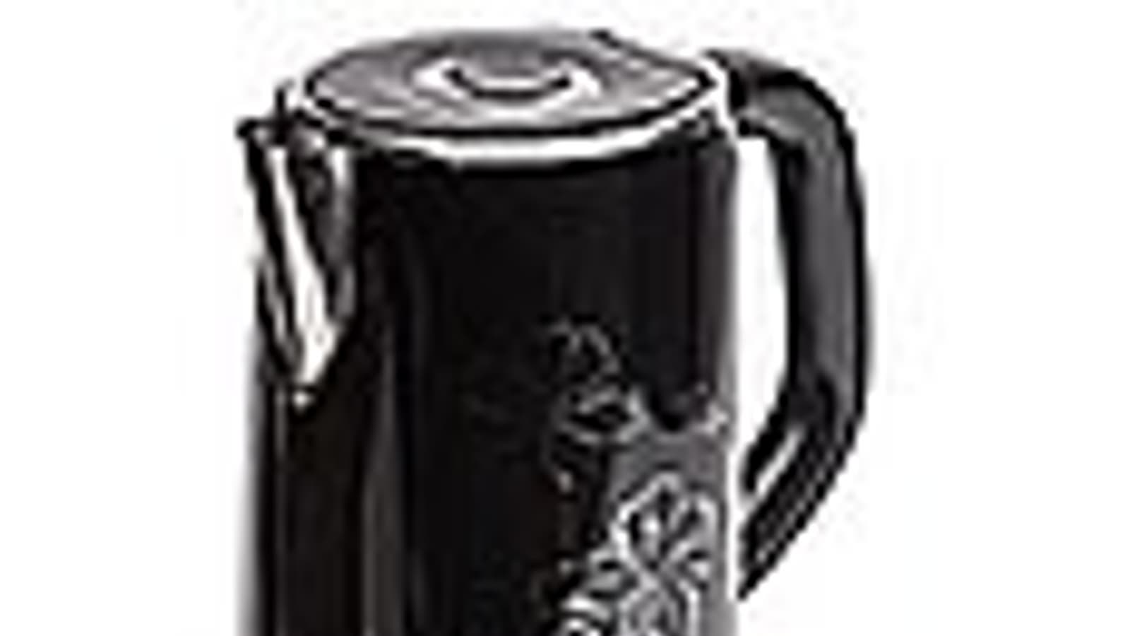 Крышка открывается нажатием на кнопку, расположенную сверху по центру. Несмотря на то, что чайник украшен цветочками-завитушками, выглядит он весьма солидно и не вызывает ненужных гендерных ассоциаций. Подставка выполнена из пластика и оснащена отсеком для хранения шнура. Длина шнура составляет 65 сантиметров, чего вполне достаточно для того, чтобы комфортно расположить прибор неподалеку от розетки.