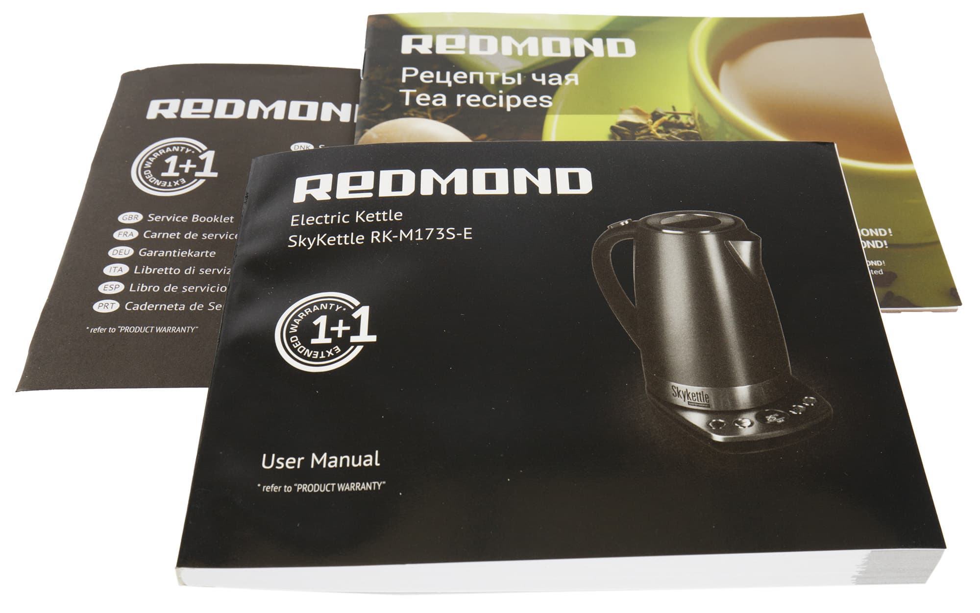 В комплекте к прибору идут 3 крохотные, но увесистые книжечки — инструкция на 26 языках, рецепты чая и гарантийная книжка (также на 26 языках).