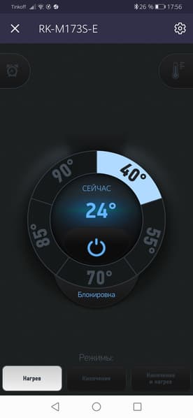 Отметим, что приложение позволяет устанавливать необходимую температуру с шагом в один градус в диапазоне от 40 до 90 °C (тогда как при управлении с базы шаг настройки составляет 5 градусов).
