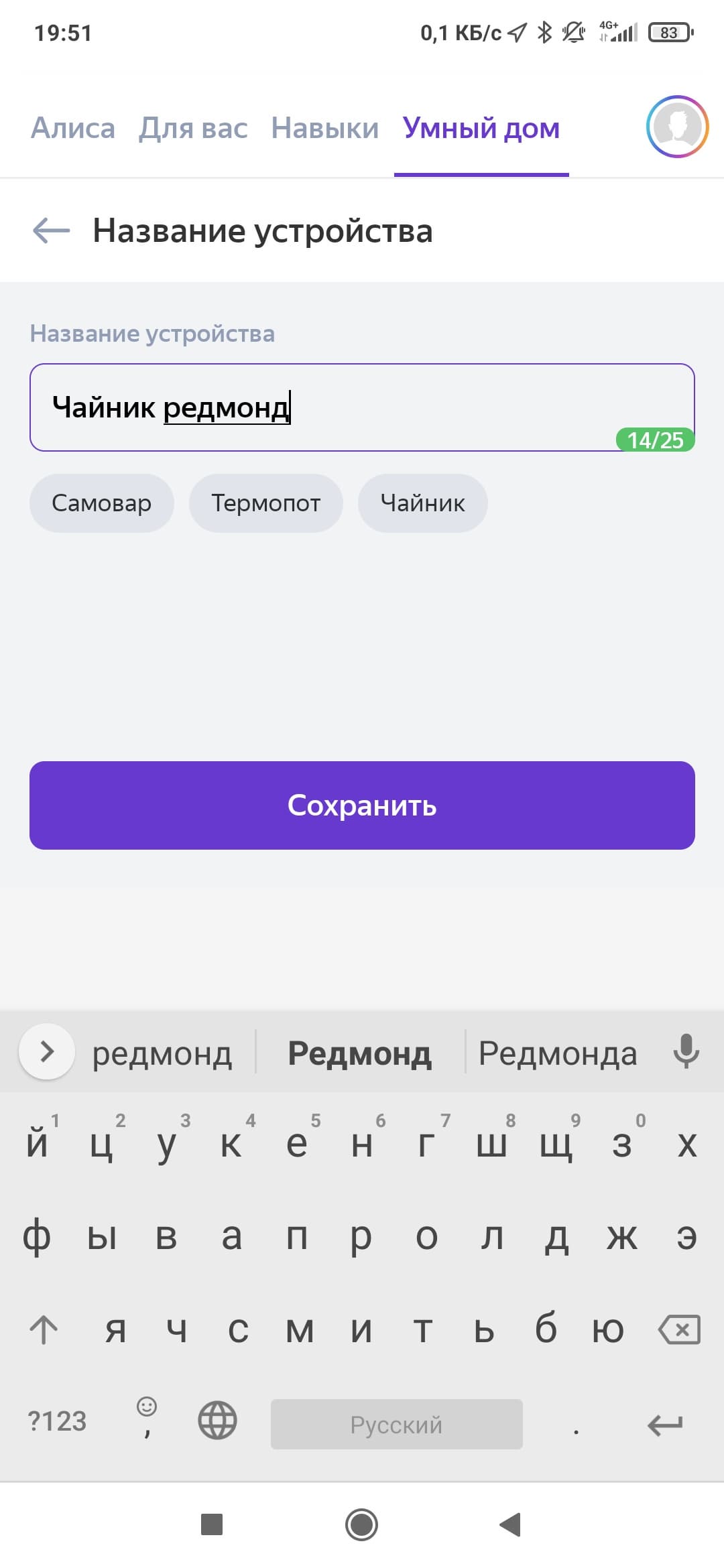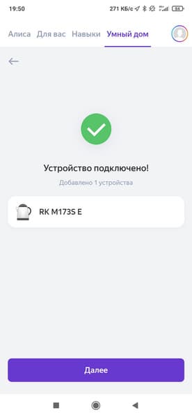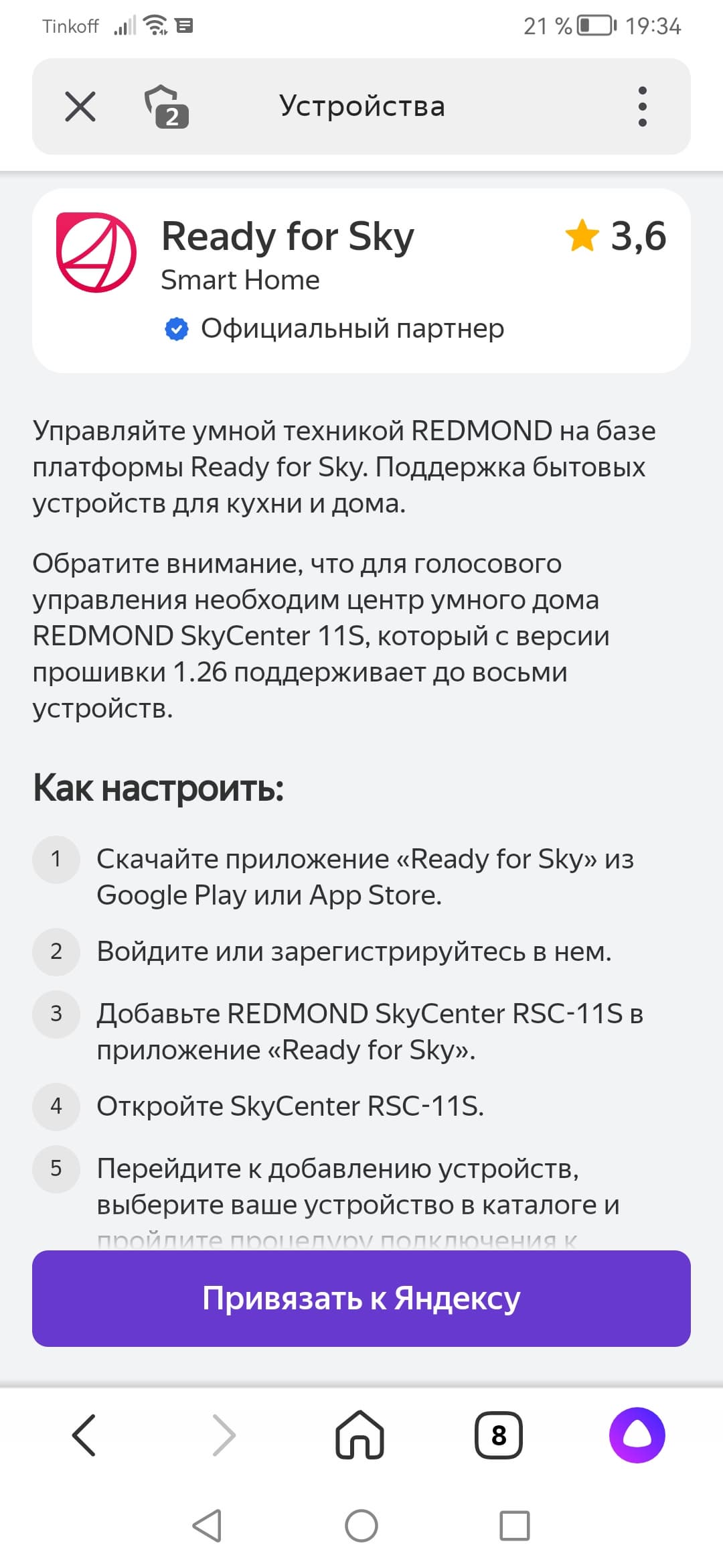 Добавление чайника в число устройств умного дома проходит по стандартным правилам: Алису нужно «подружить» с приложением Ready for Sky, предоставить доступ к уже настроенному аккаунту для авторизации.