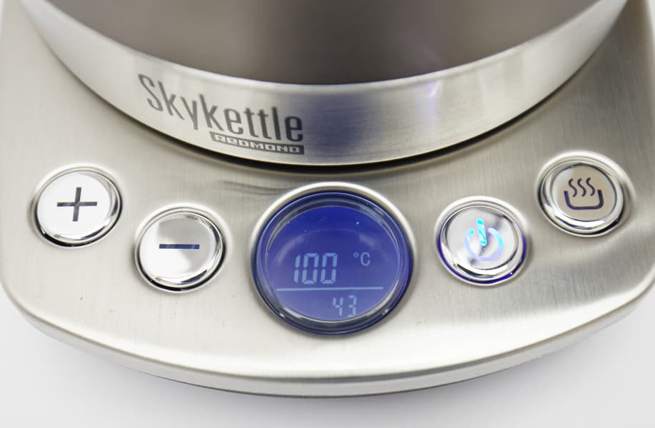 Кнопки с заданной температурой действительно доводят температуру воды в чайнике до указанных значений. А значит, в чайнике установлен весьма точный датчик, поддерживающий достоверную информацию о температуре внутри колбы как в процессе закипания, так и по ходу остывания.