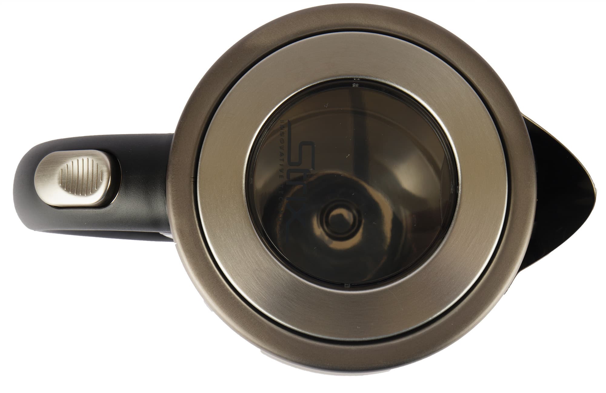 Корпус и база нашего чайника имеют благородный цвет темного металлика. Такой спокойный и лаконичный дизайн устройства впишется на любой кухне.