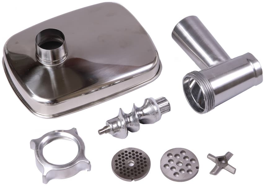 - собранная насадка-мясорубка (корпус, шнек, нож, решетка с крупными отверстиями, кольцевая гайка),