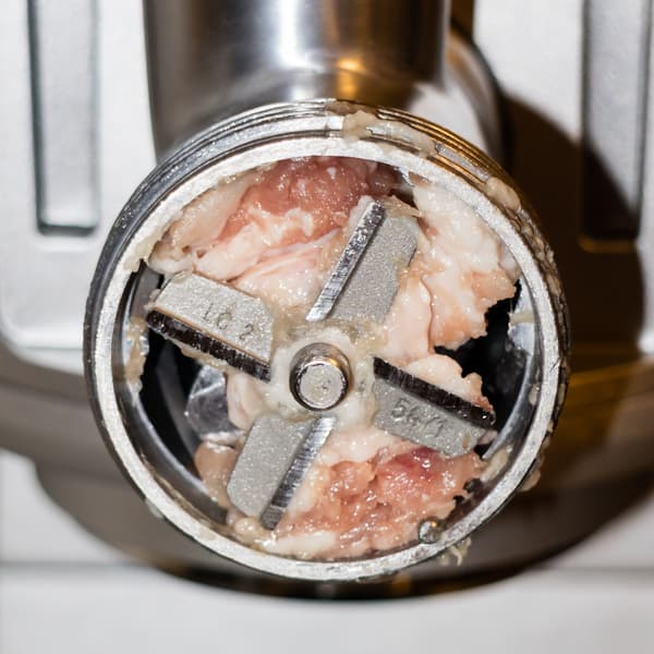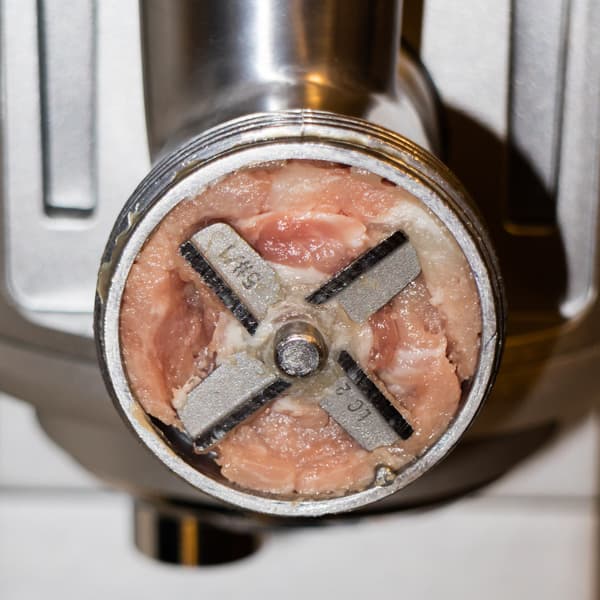На этом тесты мясорубки мы завершили, посчитав, что уж если насадка справилась с такого качества мясом, то измельчение курицы, рыбы и других несложных продуктов не представит для нее никакого труда. Возможность работать на низкой скорости пригодится для изготовления колбасок. Насадки для этой операции и для приготовления кеббе имеют стандартную форму и не преподнесут никаких сюрпризов.