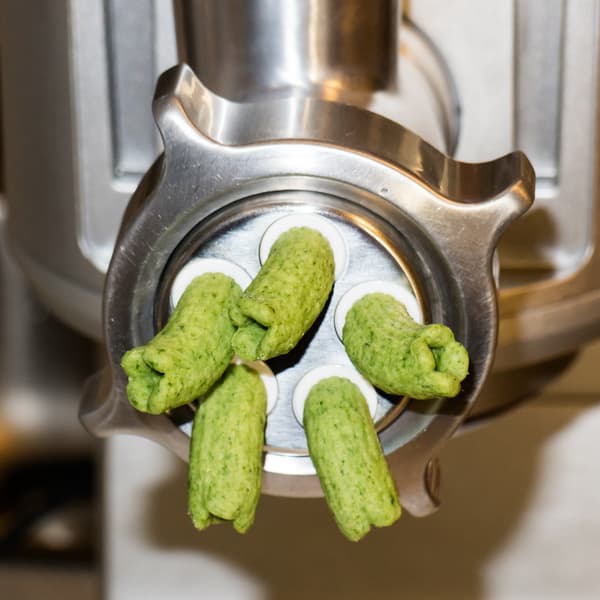 Причем «на отлично» мы оцениваем все три задействованные функции — измельчение шпината в блендере, замес плотного теста в планетарном миксере и изготовление макарон с помощью пастамейкера.
