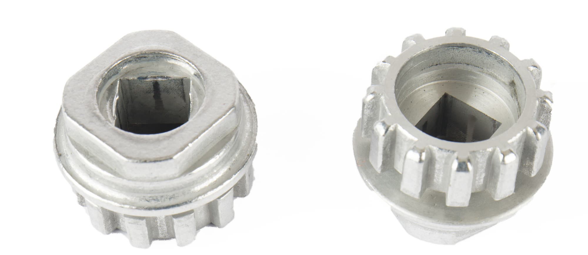 Корпус мясорубки выглядит стандартно: горловина, кольцевая гайка и шнек из алюминиевого сплава, нож и решетки — стальные. Гайка отлично накручивается на корпус, зазубрин и неровностей нет. Толкатель пластиковый, как и аксессуары: насадки для изготовления колбас и восточного блюда кеббе. Для фиксации блока его надо вставить в гнездо под углом 45° от вертикали и повернуть против часовой стрелки до вертикального положения. Чтобы блок снять, достаточно нажать на специальную кнопку на корпусе.