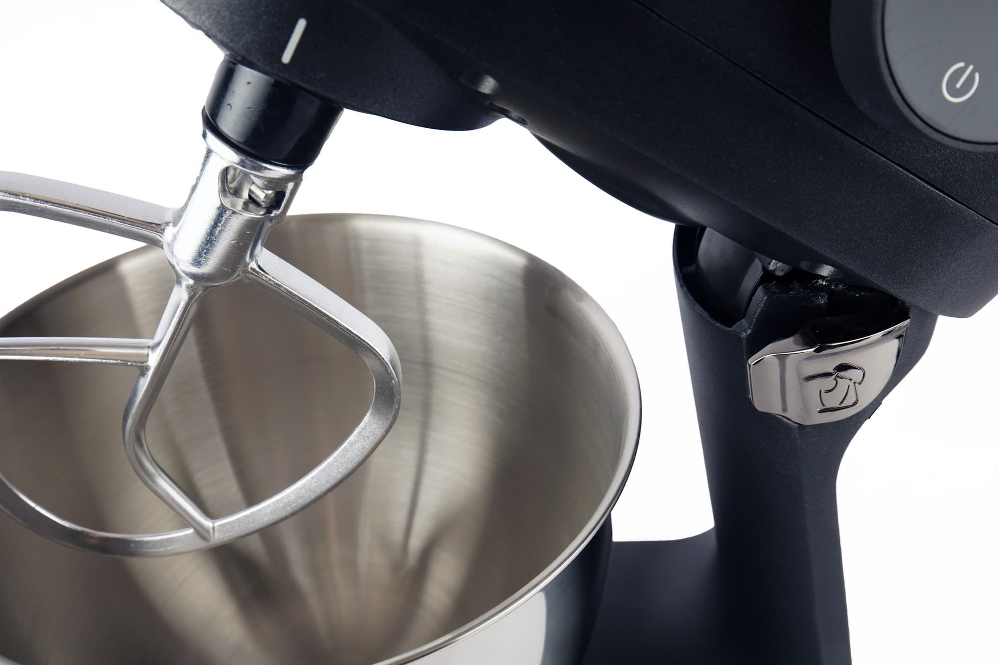 Планетарный миксер работает почти идеально, справляясь как с совсем небольшим объемом продуктов, так и с заполненной более чем наполовину чашей: венчик играючи взбил три яйца для будущего майонеза (с трудом, правда, захватив горчицу, прилипшую к стенке чаши) и идеально вымешал почти два килограмма фарша. Крюк замесил идеальное тугое тесто, которое мы впоследствии раскатывали практически без добавления муки. Крышка показалась нам избыточным элементом: в ходе всех тестов она оставалась совершенно чистой, возможность плавного запуска предотвращает разбрызгивание.