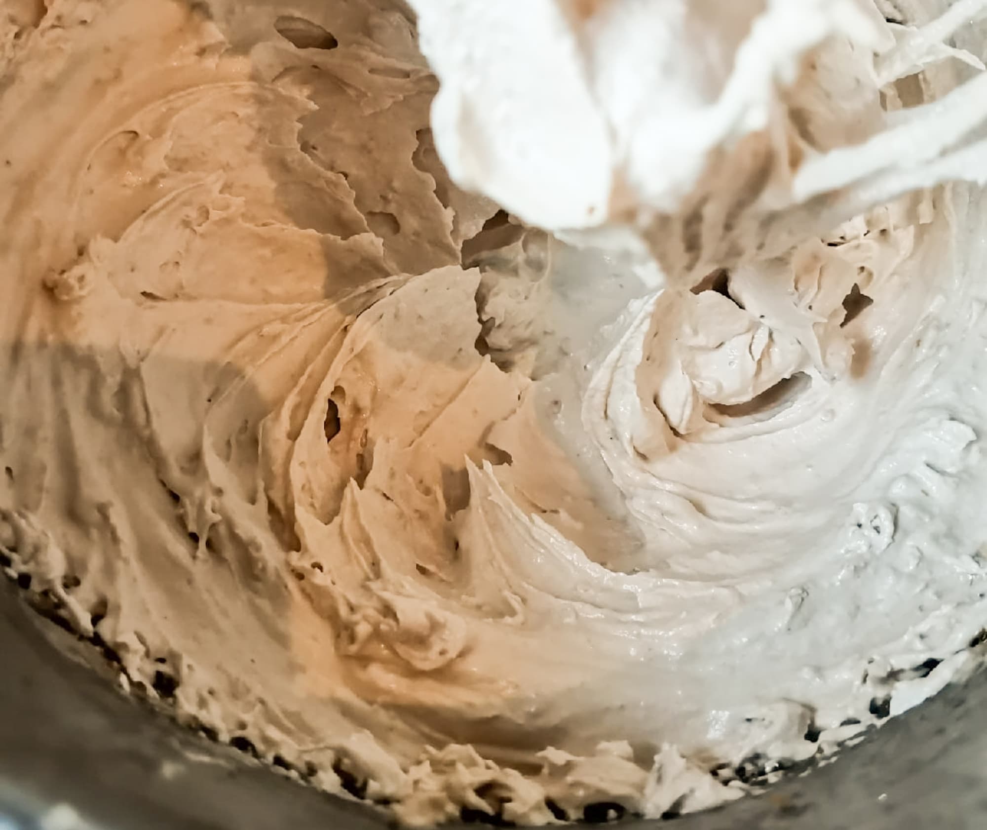 Мы взяли натуральный яблочный мармелад (печеные яблоки, протертые и уваренные с сахаром до густоты), порезали его небольшими кусочками и положили в чашу миксера. К мармеладу добавили яичный белок, поставили насадку венчик. Сначала венчик измельчил мармелад в крошку, а затем начал его взбивать. Мы оставляли миксер работать сначала на скорости 4-5 около 10 минут, затем вынули чашу, перемешали массу вручную, так как часть мармелада налипла на стенки, и через 10-15 минут запустили миксер на еще один цикл на максимальной скорости. Размешали ложкой еще раз, для проверки на наличие не взбитых кусочков, и при работающем на 3-й скорости миксере, тонкой струйкой ввели в массу немного инвертного сиропа. Повысили скорость до максимума и через 5-10 минут наша зефирная масса была готова.