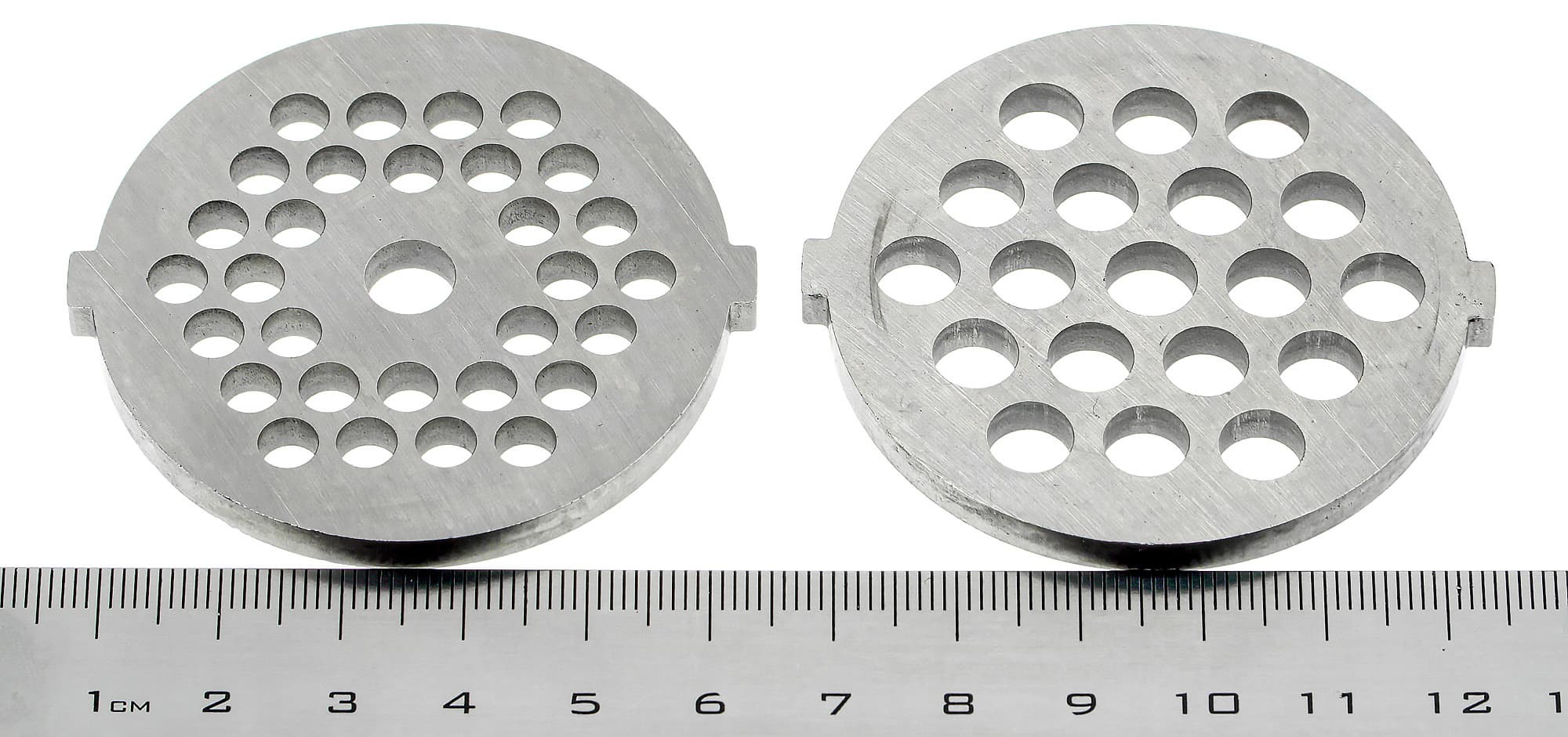 Перфорированные диски с диаметром отверстий 6 мм и 4 мм сделаны из толстого металла.