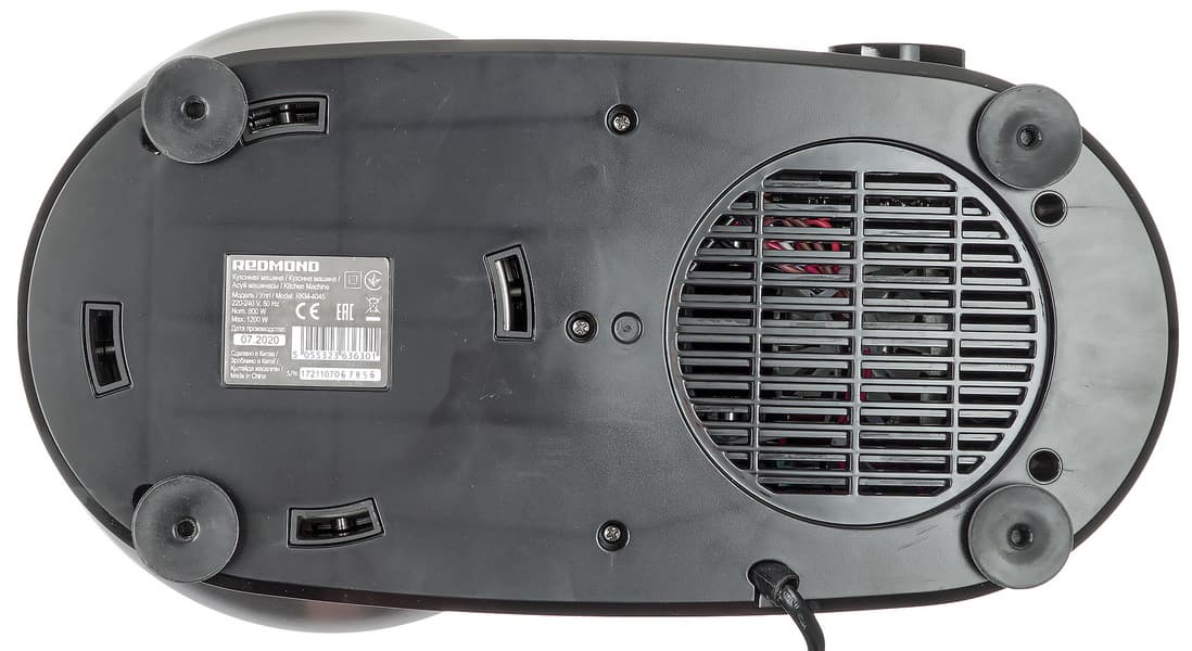 Снизу прибора располагается еще одна решетка и наклейка с основными техническими данными и серийным номером. Четыре ножки, на которых стоит комбайн, резиновые в форме присосок, служат дополнительным гасителем вибраций.