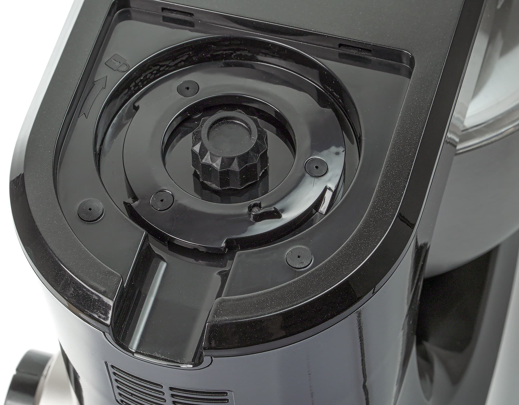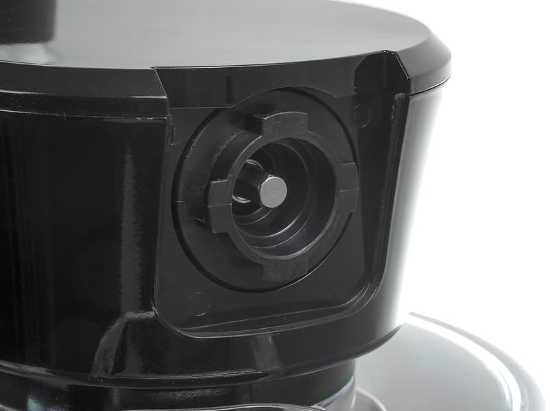 Для кувшина предусмотрено посадочное гнездо под пластиковой заглушкой. Если заглушка снята, а кувшин не установлен, комбайн не включится — сработает защита. Посадочное гнездо пластиковое, кувшин на нем фиксируется поворотом по часовой стрелке.