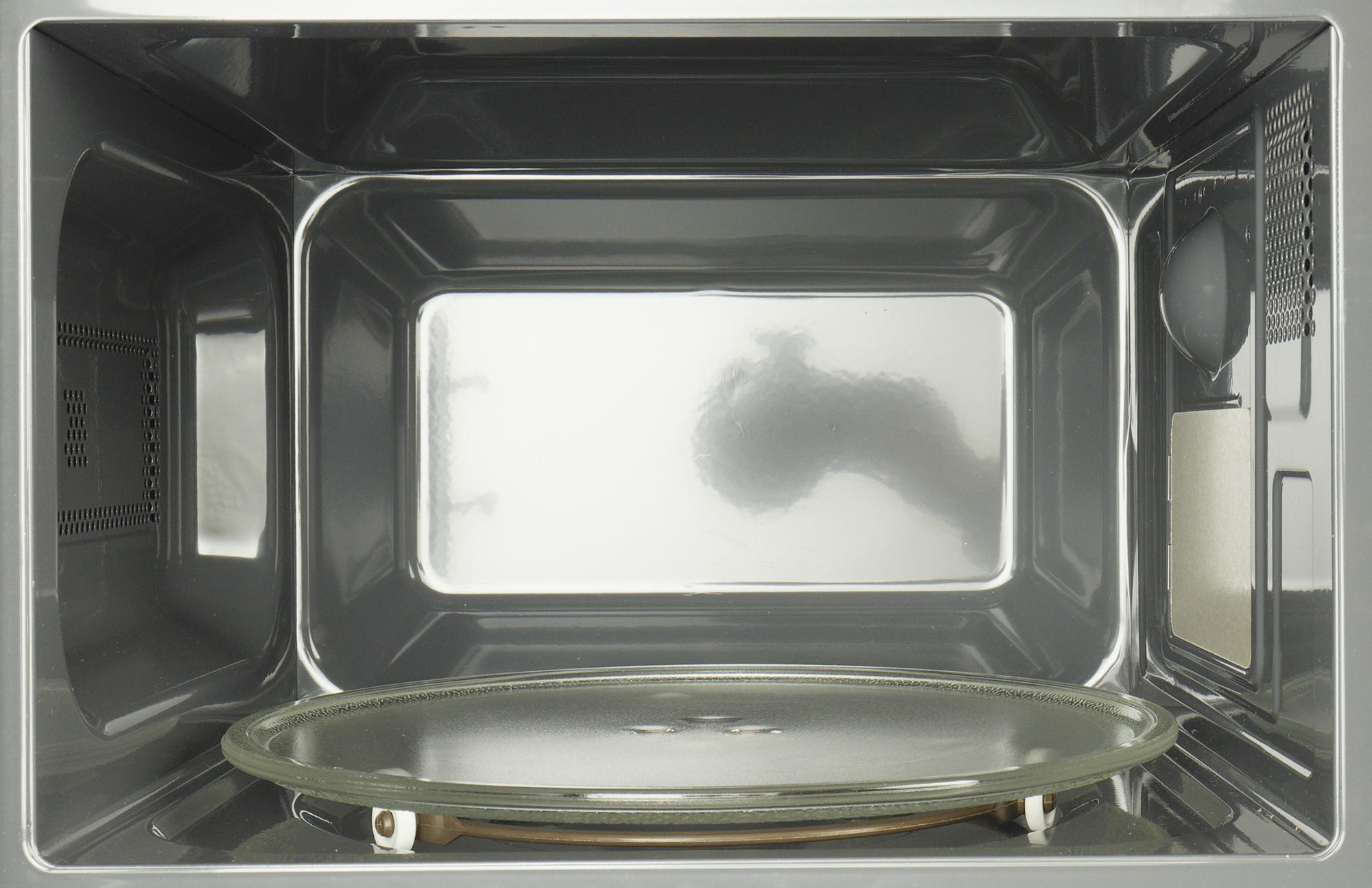 Корпус микроволновки, внутреннюю камеру и дверцу изнутри можно протирать мягкой влажной, а затем сухой тканью. Роликовое кольцо и стеклянное блюдо-поддон моются в теплой воде с нейтральным моющим средством. Для удаления неприятного запаха, в камеру следует поместить емкость с водой и соком половины лимона, включить нагрев на максимальной мощности на 5 минут, после чего убрать ароматную жидкость и протереть камеру сухой салфеткой.