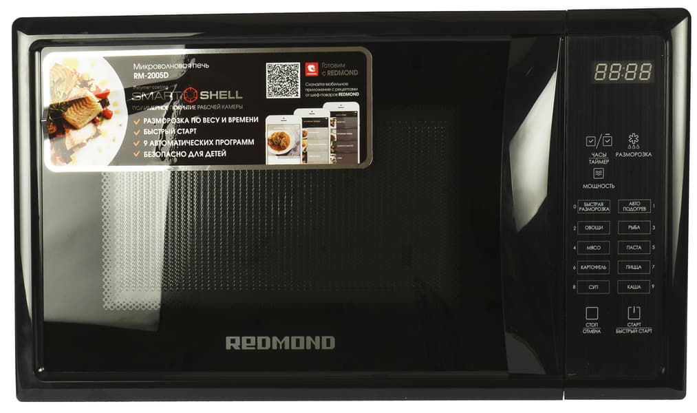 Сегодня речь пойдет об отдельностоящей микроволновой печи Redmond RM-2005D. Модель имеет рабочую камеру на 20 литров, 9 автоматических режимов и возможность установки двухэтапного приготовления.