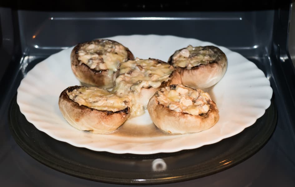 Готовили на максимальной мощности 3 минуты. Грибы приятно упругие, сыр в начинке полностью расплавился и вошел в прекрасный симбиоз с грибами и майонезом. Начинка прогрета равномерно. Прибор потребил за этот тест 0,066 кВт·ч.