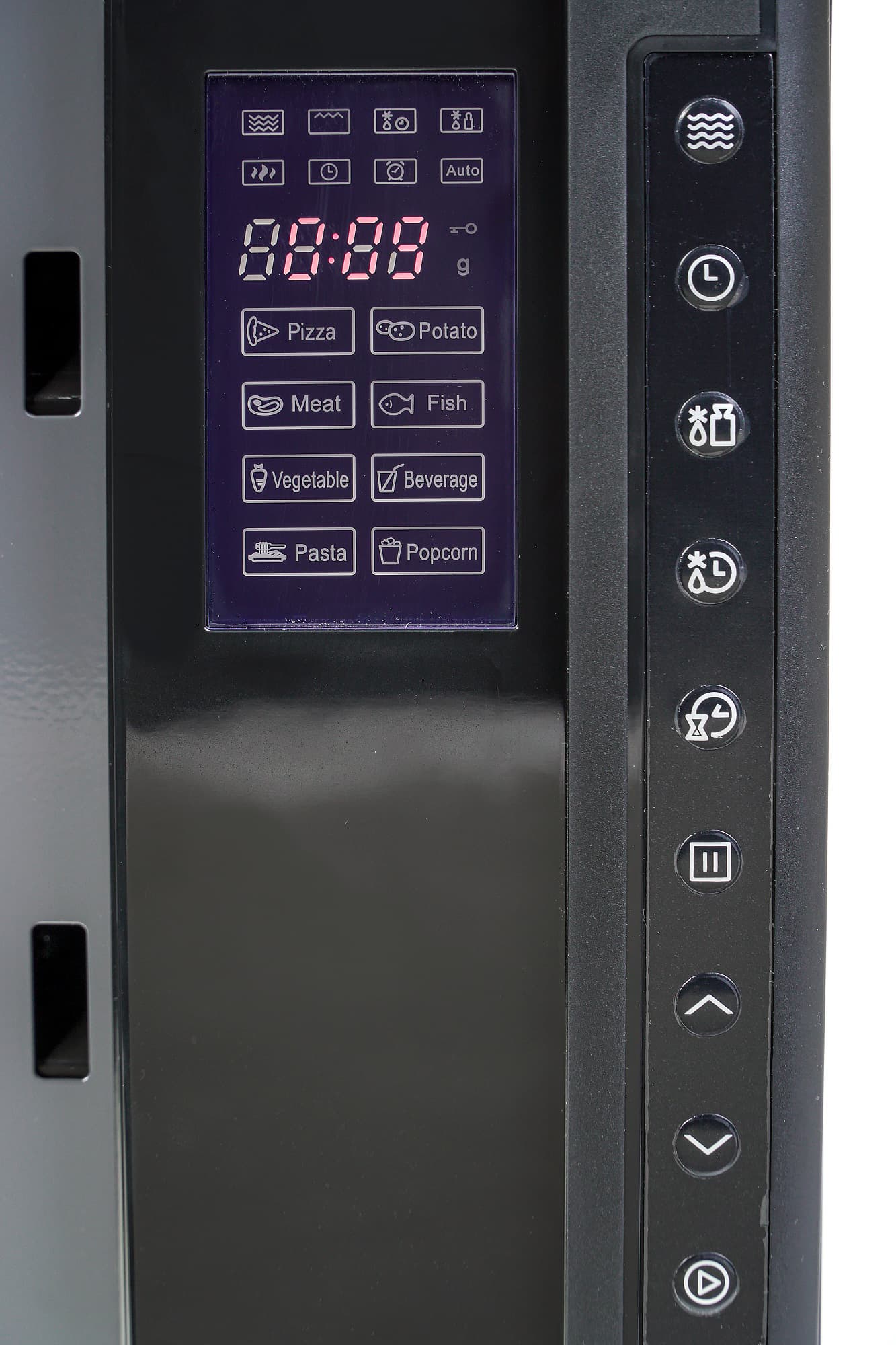 На дисплее отображаются часы в режиме ожидания, оставшееся время приготовления во время работы, параметры автоматических программ во время выбора, а также ряд индикаторов, помогающих сделать взаимодействие с печью более наглядным. Цифры и индикаторы отлично видны даже в солнечной или ярко освещенной комнате.