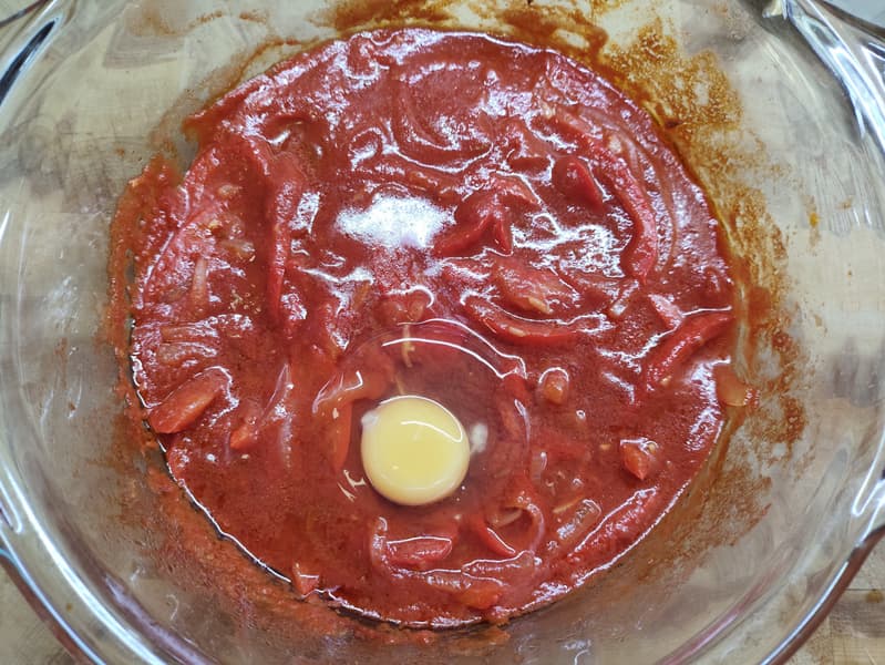 Если видим, что часть яично-бульонной смеси осталась жидкой — слегка перемешиваем и добавляем еще минуту.