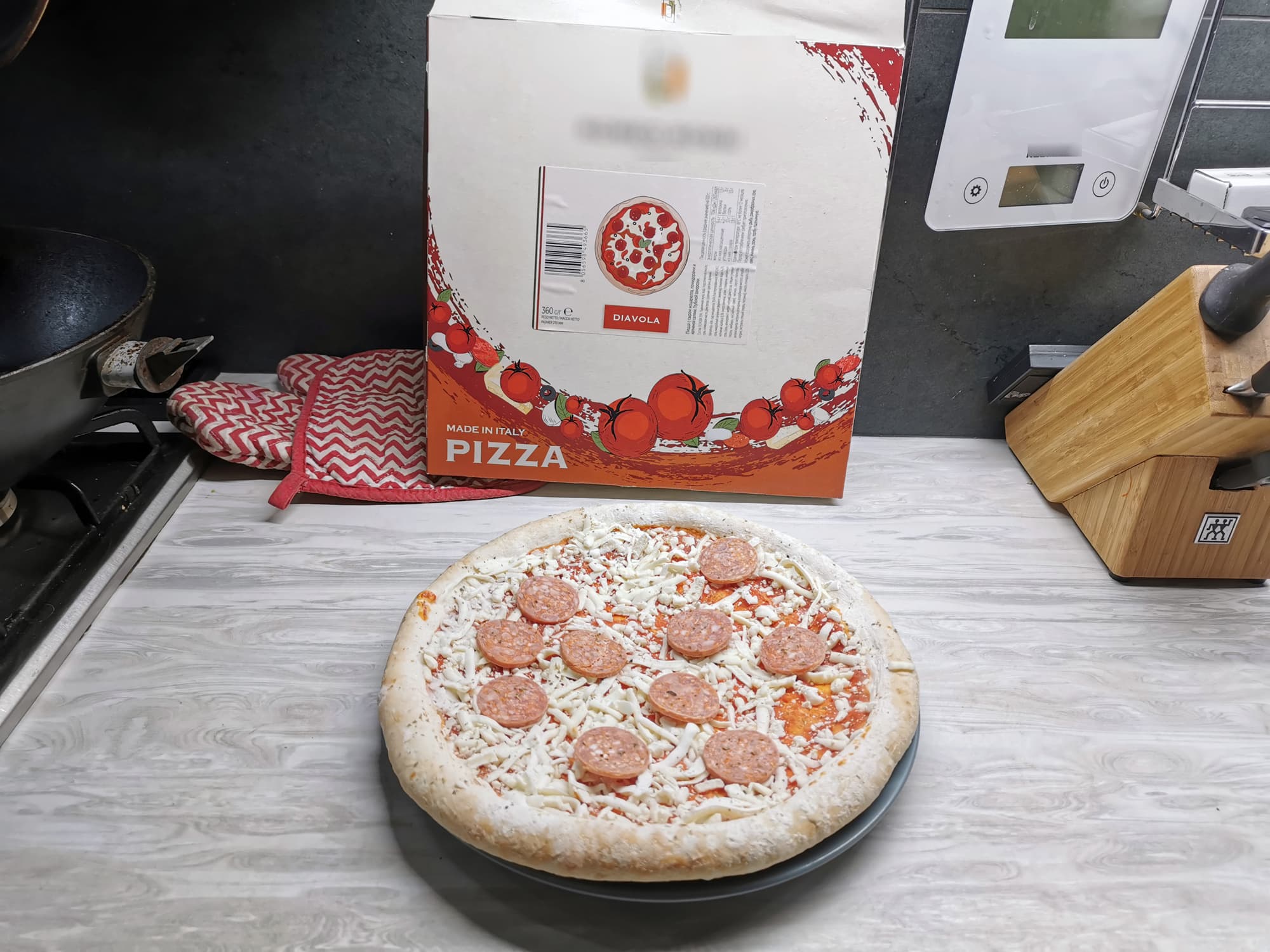 Одним из 8 автоматических режимов микроволновой печи является режим «Пицца», рассчитанный на пиццу весом 200 или 400 г. Мы решили испытать данную программу и взяли замороженную пиццу весом 360 г.