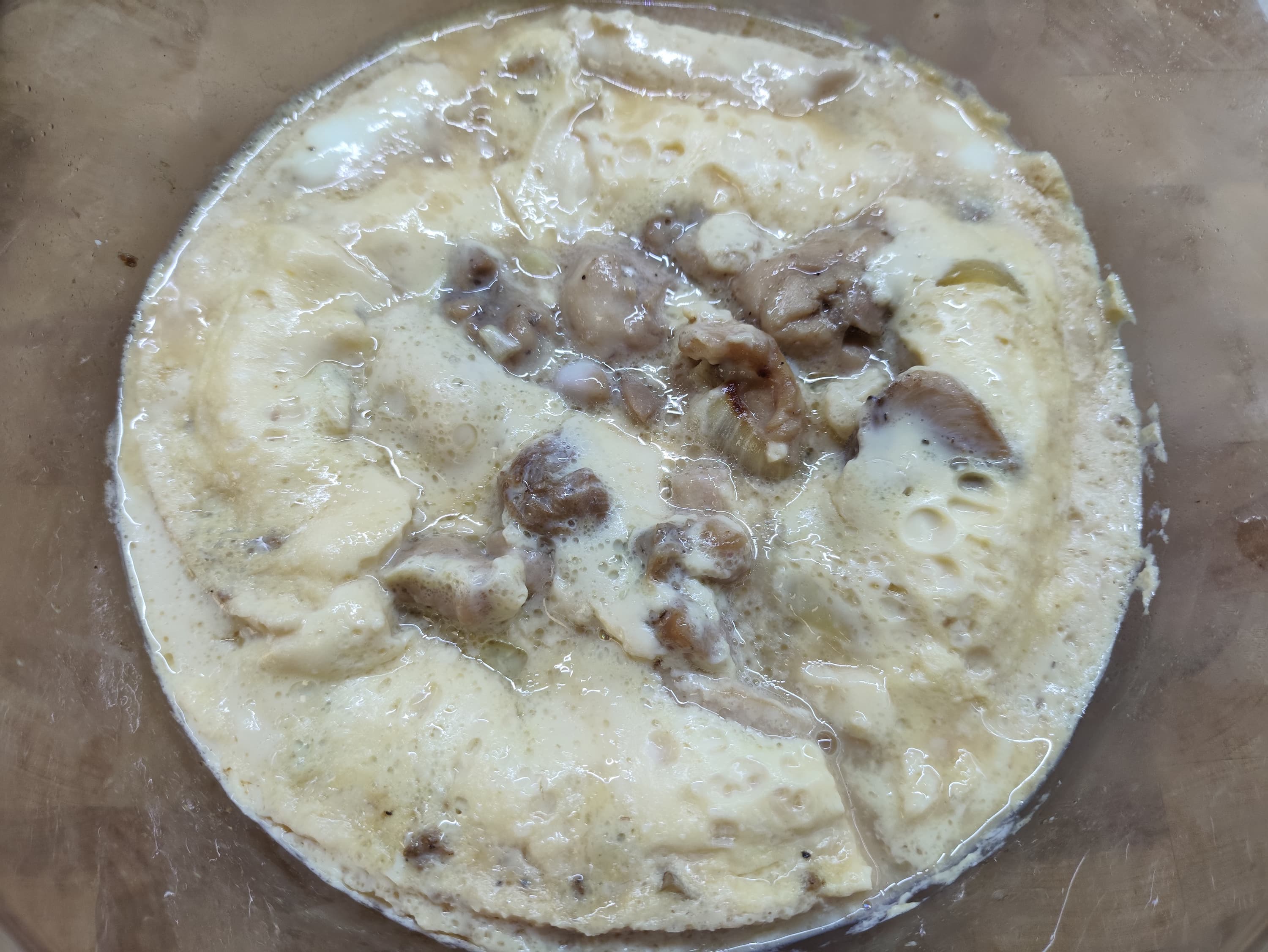 В пюре мы добавили черный молотый перец и 2 куриных яйца.