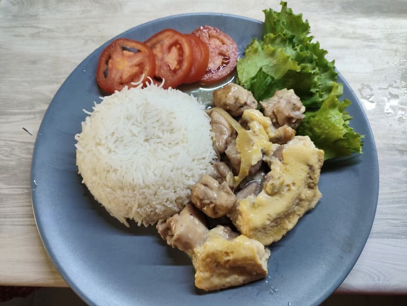 Наш второй эксперимент — оякодон: блюдо японской кухни, домбури с омлетом, в которое добавлено куриное мясо без кожи и костей и лук (также может включать грибы шиитаке). Название блюда буквально означает «родитель и ребенок»: под родителем подразумевается курица, а под ребенком — яйцо; «дон» — сокращение от «домбури», что, в свою очередь, переводится как чаша.
