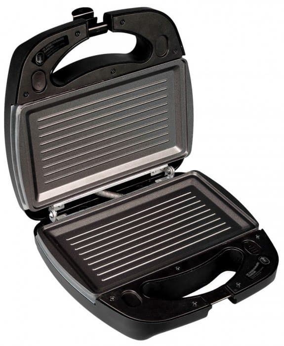 Вот использовать прибор именно в качестве гриля для жарки, например, мяса или рыбы мы бы не рекомендовали. Мощности оказываются недостаточными для своевременного испарения выделяющейся влаги. Для того чтобы верхняя панель прижимала и жарила продукт сверху, толщина последнего должна быть не менее 3 см.