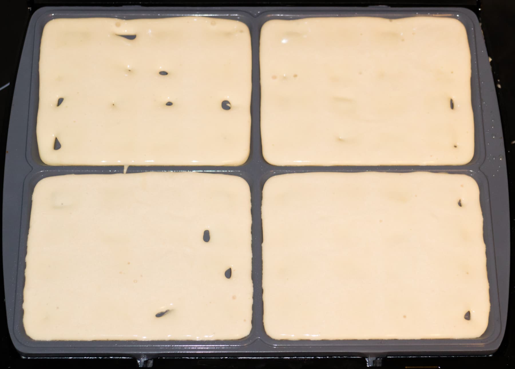 По умолчанию прибор укомплектован панелями для выпечки толстых бельгийских и венских вафель. За одну итерацию можно испечь четыре довольно крупных по размеру (10×12 см) изделия.