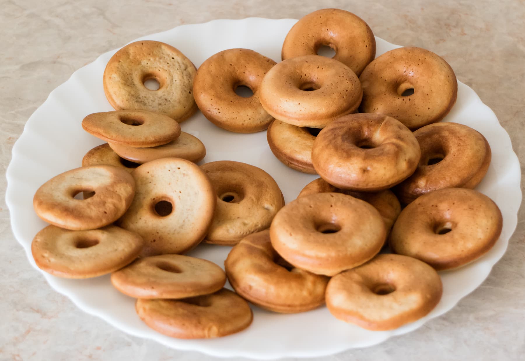 При выпечке пончиков нужно действовать довольно быстро. Именно поэтому мы акцентировались в названии статьи на том, что некоторые вещи сможет адекватно сделать либо опытный, либо быстрый кулинар. На следующей фотографии с левой стороны расположены изделия, которые получены из оригинального рецепта, справа — пончики с увеличенным содержанием муки.