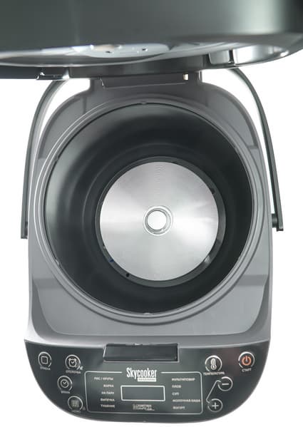 Традиционная логика Redmond работает и здесь: автоматические программы можно запускать, задавать желаемое время работы и прерывать, а функция «Мастершеф Лайт» позволяет менять настройки времени и температуры прямо в процессе работы. Единственный сюрприз, который нас поджидал, это отсутствие программы «Экспресс», упомянутой в инструкции. Возможно, модель RMC-961S датчиком выкипания воды не оснащена.