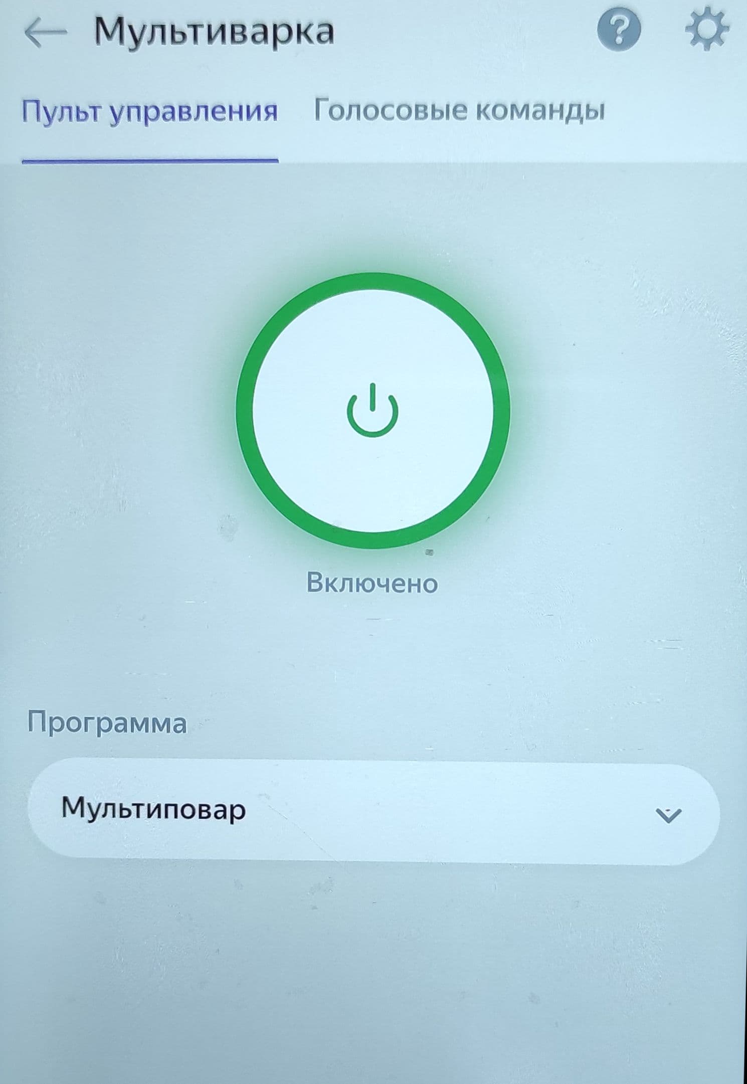Далее необходимо выбрать комнату для прибора, чтобы впоследствии можно было командовать Алисе включить чайник на кухне или погасить торшер в гостиной. Мы задали комнату «Кухня» и переименовали прибор в мультиварку, так как Яндекс просил писать кириллицей. Далее мы получили возможность выбирать между пультом управления с усеченным функционалом (включать и выключать автоматические программы без изменения их параметров) и голосовыми командами. Проверив, что пульт работает, мы перешли к общению с Алисой.