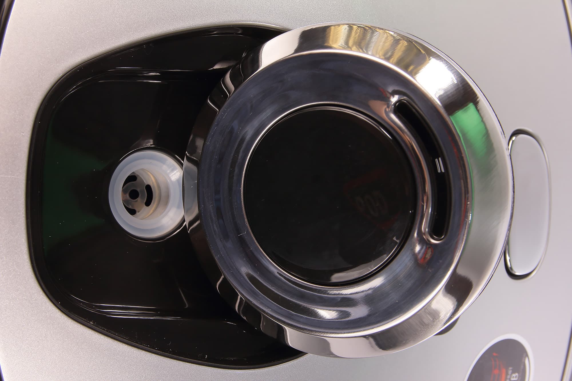 Сверху расположена пластиковая крышка, открывающаяся при помощи нажатия на механическую кнопку. С внешней стороны крышки расположен съемный разборный клапан выпуска пара. С внутренней — съемная внутренняя крышка.